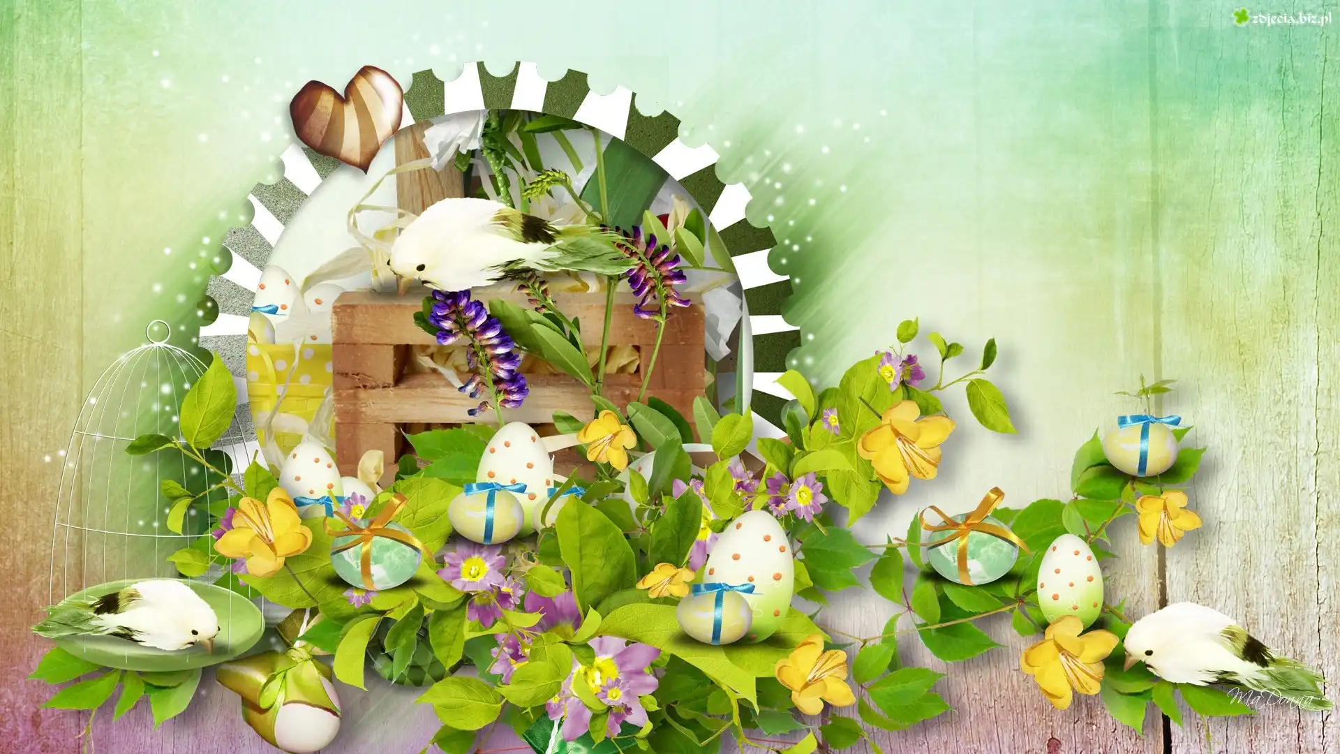 Zdjęcie Wielkanoc, Kolorowe, Kwiatki, Ptaszki, Pisanki