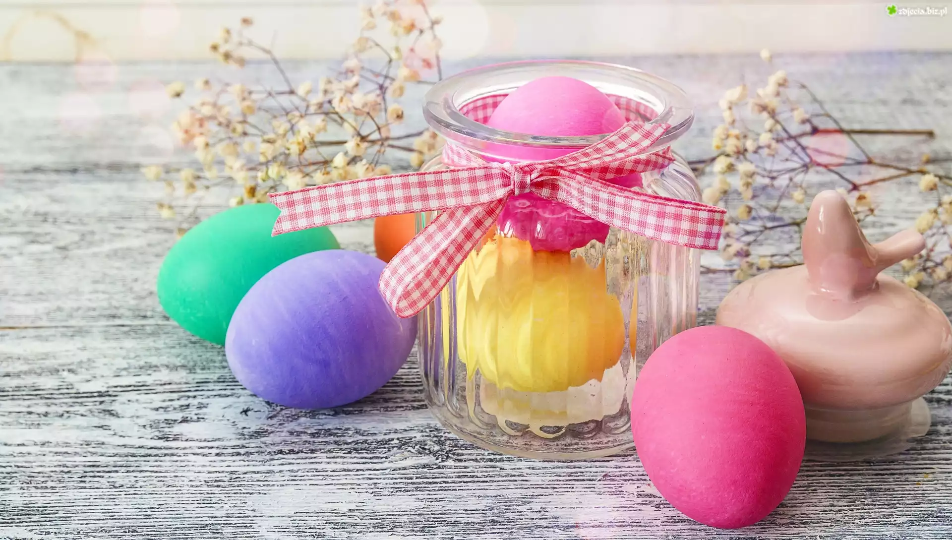 Zdjęcie Wielkanoc, Kolorowe, Pisanki, Słoiczek, Gipsówka