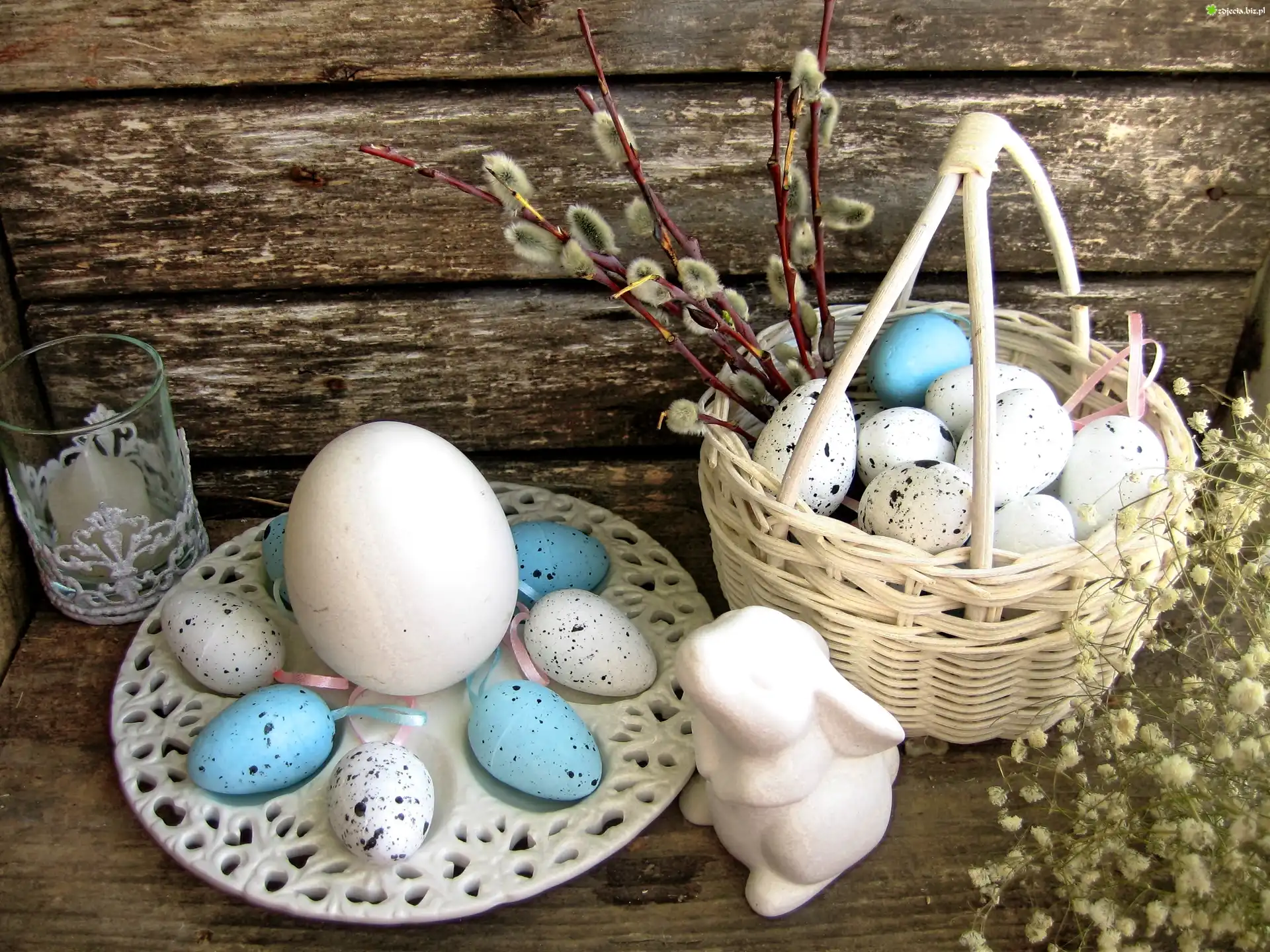 Zdjęcie Wielkanocne, Jajka, Talerz, Koszyk ,Kompozycja