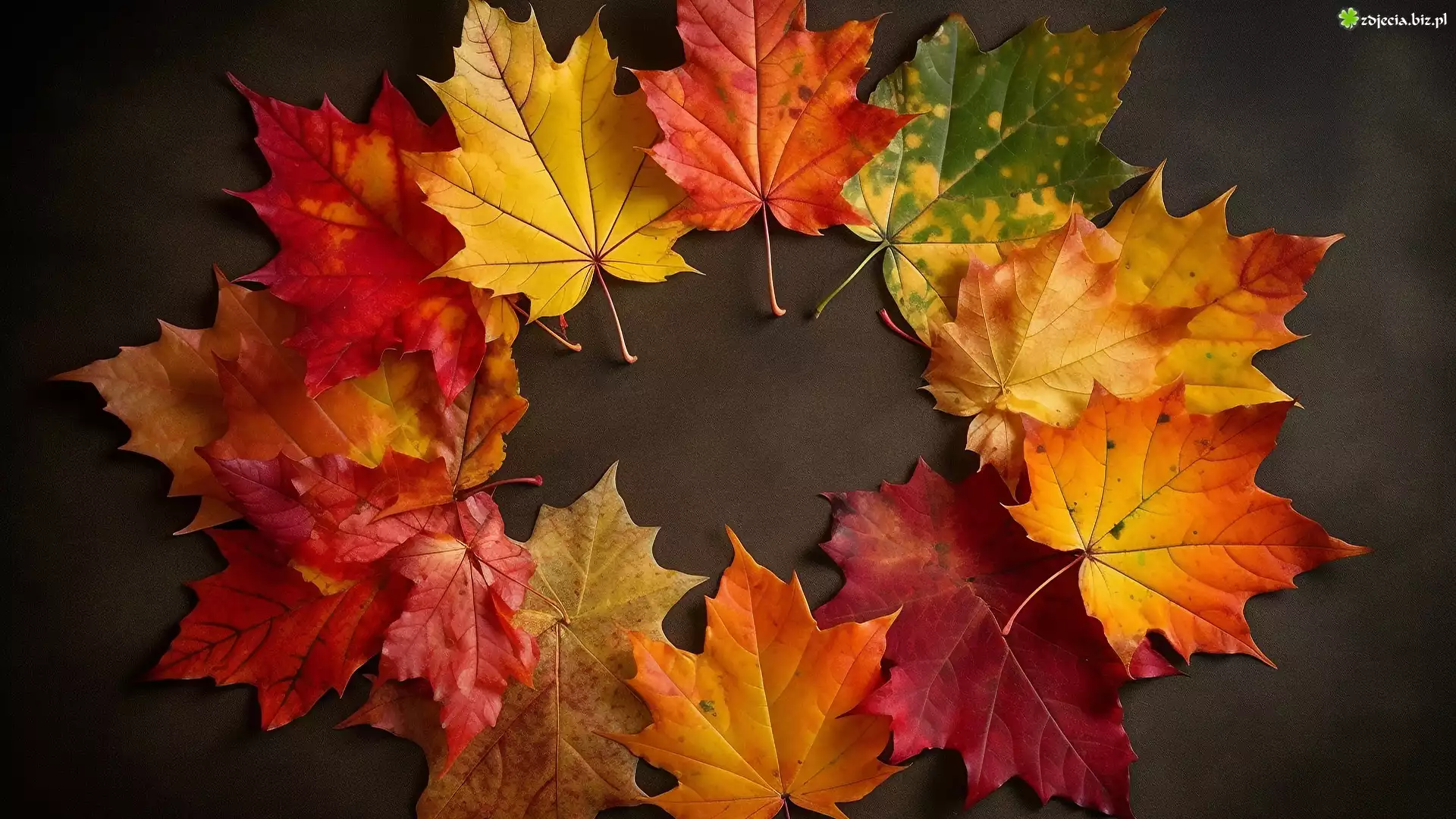 Zdjęcie Rozświetlone, Wielobarwne, Liście, Ciemne tło