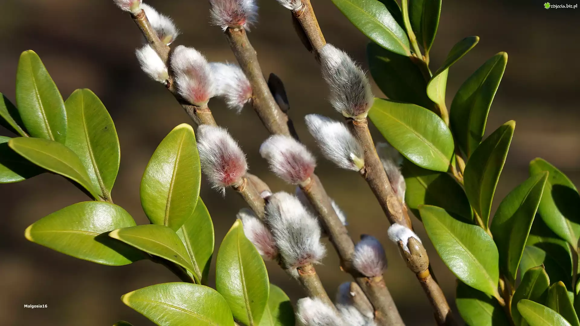 Zdjęcie Wierzba, Bazie, Gałązki, Zielone, Liście, Bukszpan
