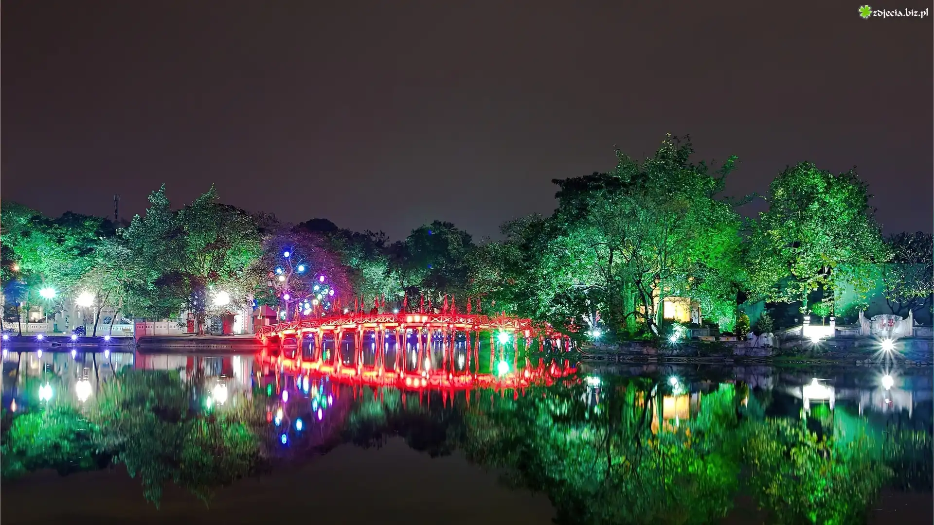 Zdjęcie Wietnam, Hanoi, Rzeka, Mostek, Drzewa, Noc
