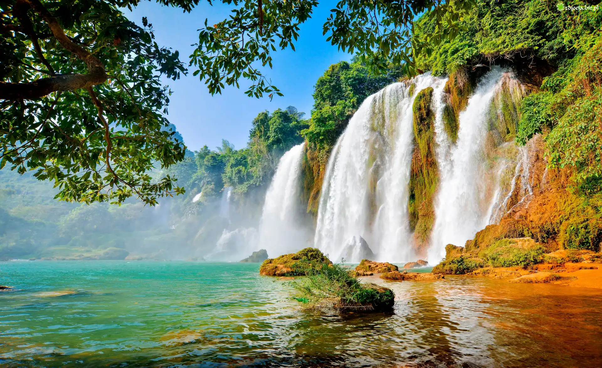 Wodospad Tęcze Wodospad, Skały, Schodki Wodospad, Skały Wodospad, Wśród, Skał Podświetlony, Wodospad, Niagara, Kanada Wodospad, Rzeka, Mech Wietnam, Świątynia, Roślinność, Wschód słońca, Chmury Górska, Rzeka, Wodospad Zielone, Wzgórza, Pola, Plantacja herbaty, Long Coc Tea Hill, Góry, Mgła, Ścieżka, Drzewa, Wietnam Liście, Woda, Kaskada Wodospad Góry, Wzgórza, Wodospady, Ban Gioc Falls, Domy, Drzewa, Chmury, Wietnam Wodospad, Niagara, Wycieczki, Wzburzona, Woda Wysoki Wodospad
