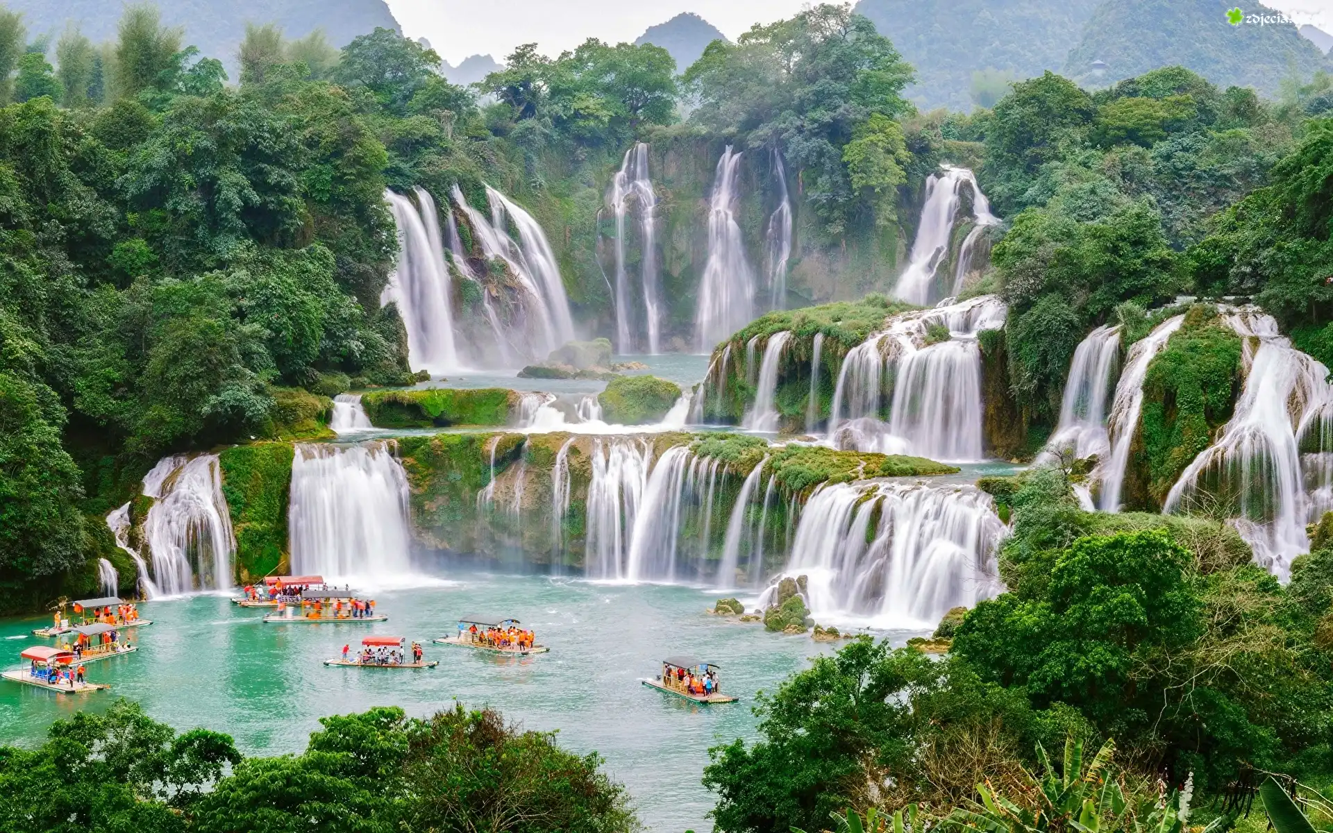 Zdjęcie Wodospad Ban Gioc Waterfall, Łodzie, Jezioro, Rzeka, Cao Bang, Wietnam