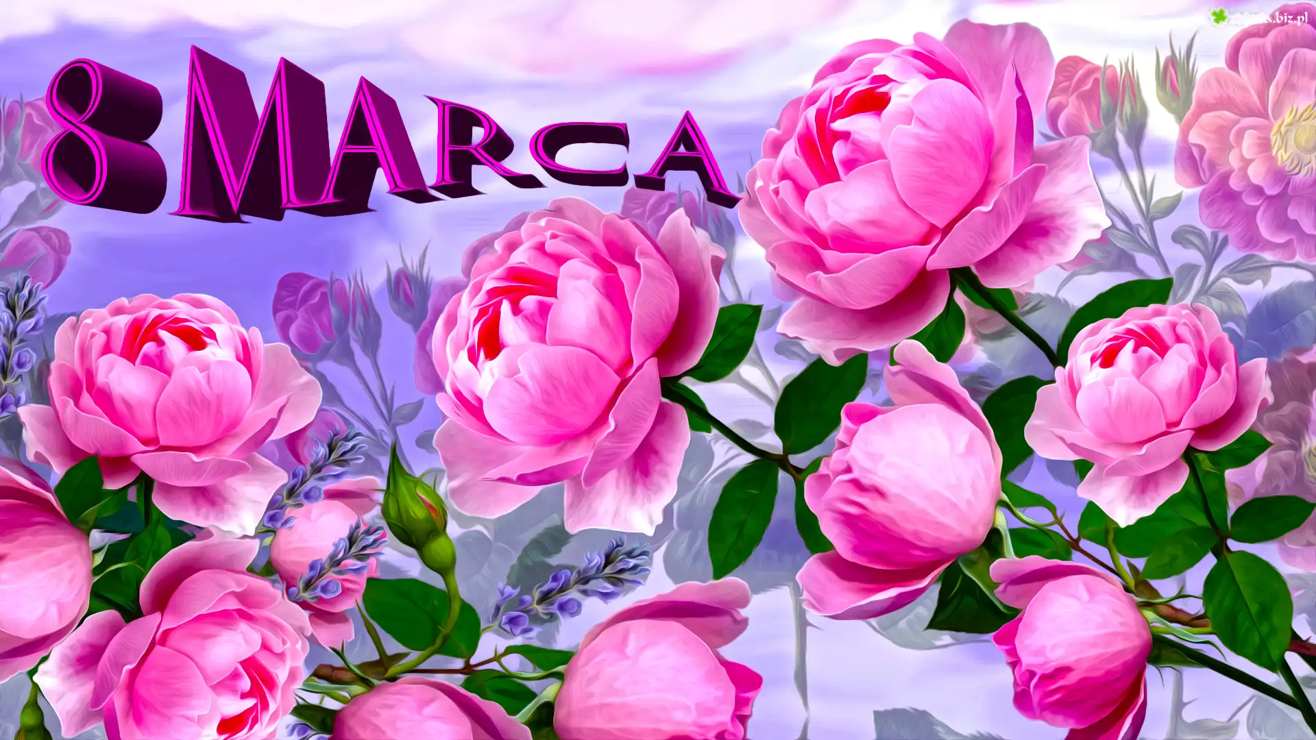 Zdjęcie Święto, Dzień Kobiet, Kwiaty, Róże, Napis