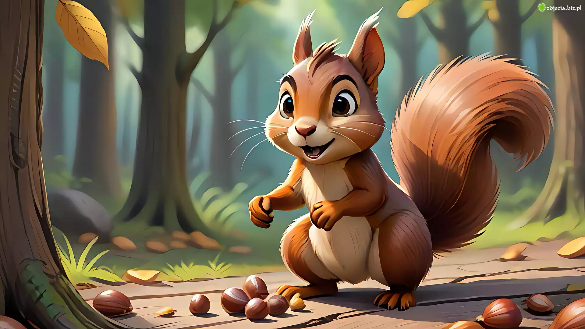Zdjęcie Grafika, Wiewiórka, Droga, Las, Orzechy
