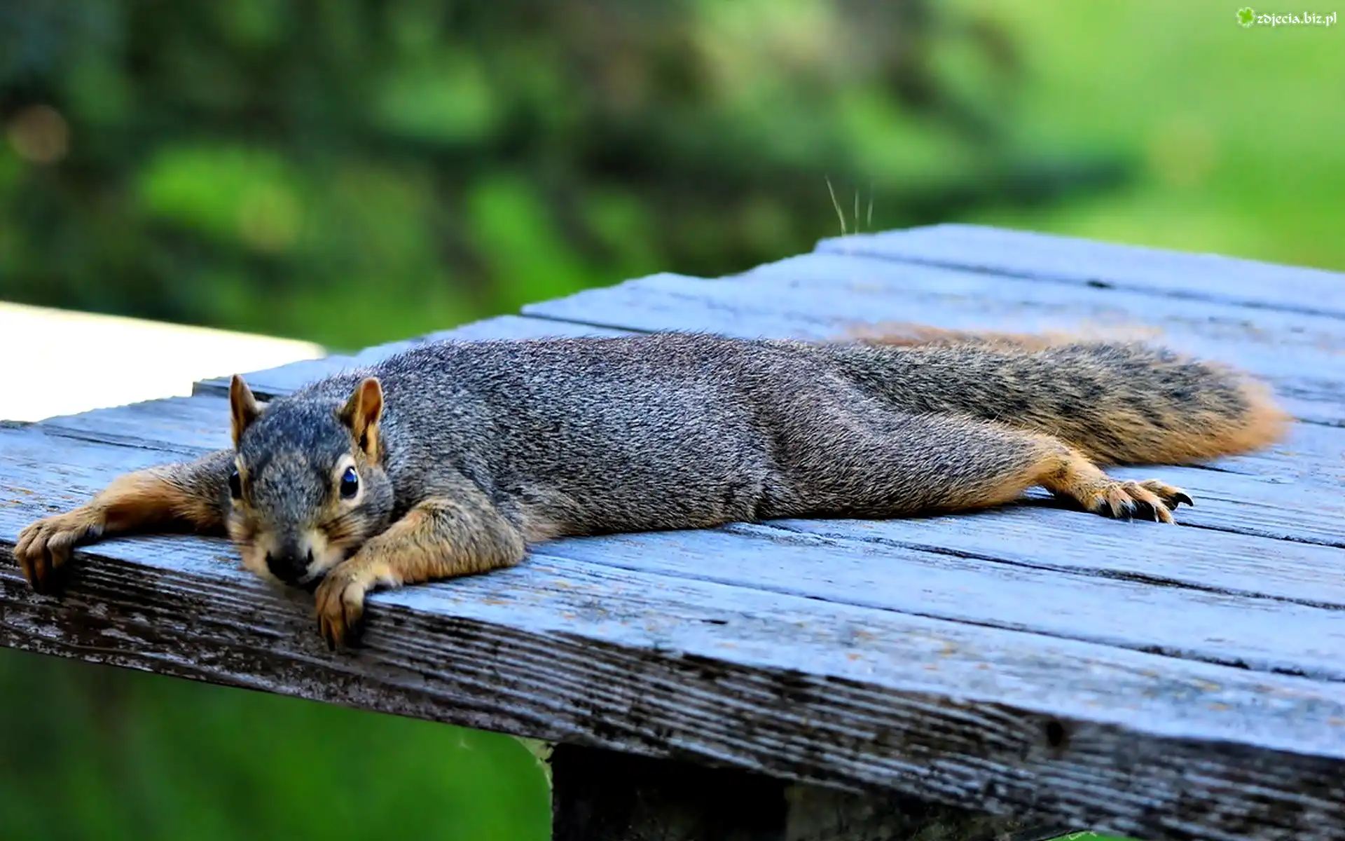 Zdjęcie, Leżąca, Wiewiórka, Ławka
