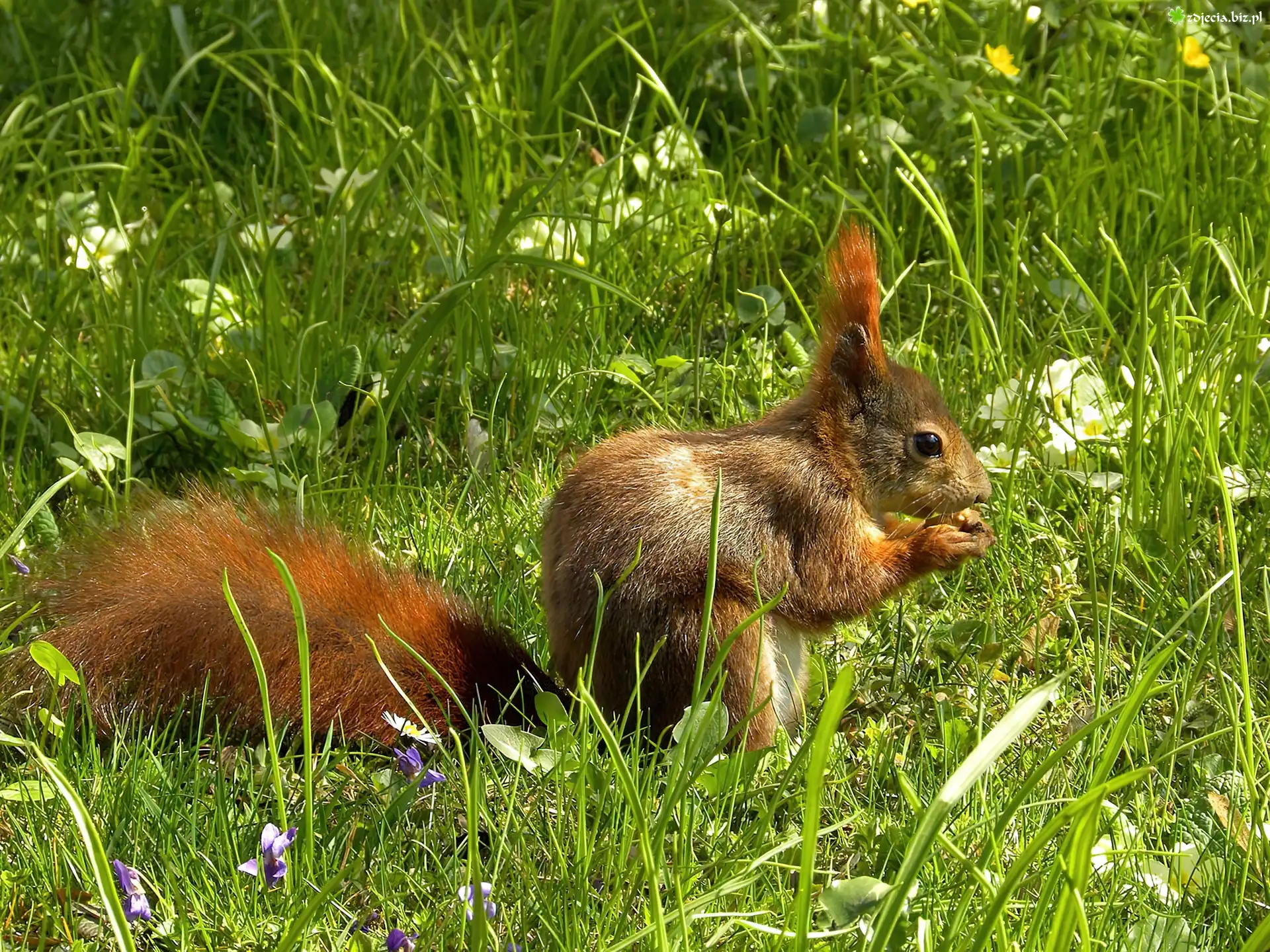 Zdjęcie Wiewiórka, Jedząca, Orzecha, Łąka