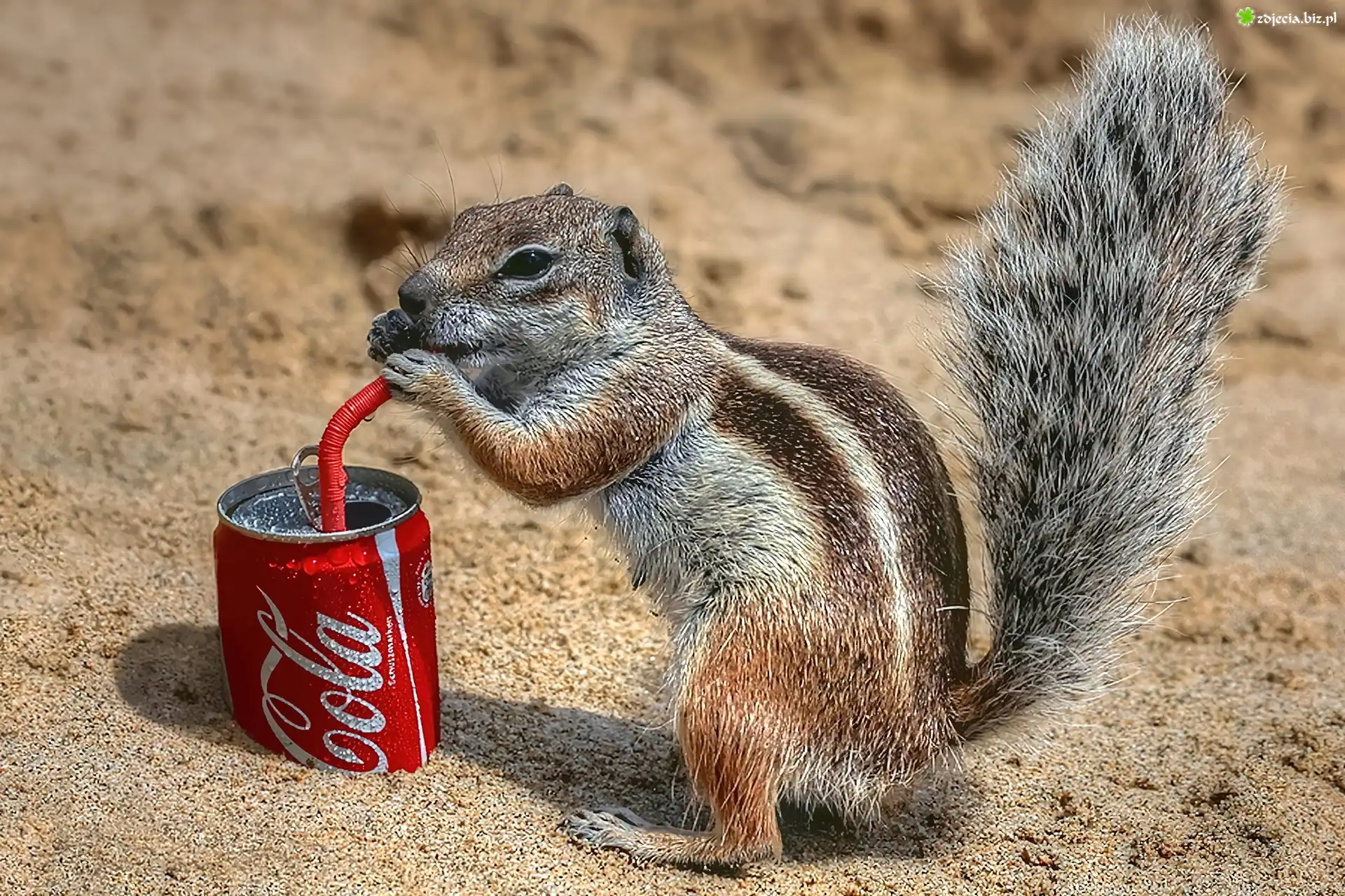 Zdjęcie Chipmnuk, Wiewiórka, Ziemna, Spragniona, Cola