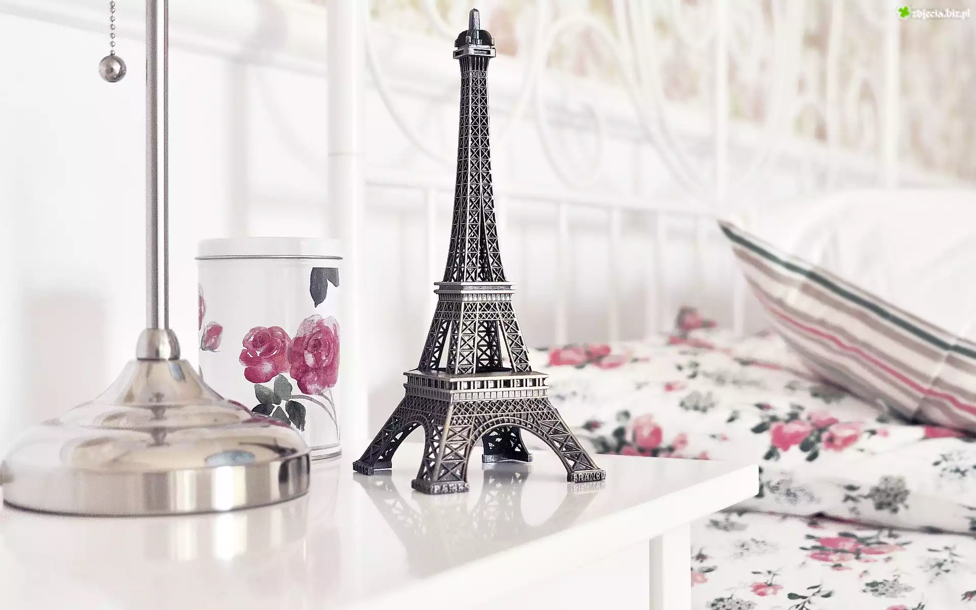 Zdjęcie, Wieża Eiffla, Łóżko, Poduszki