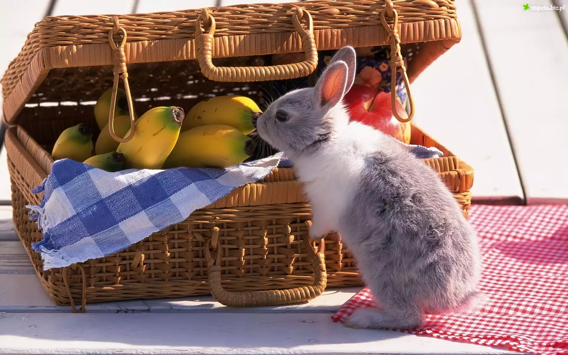 Zdjęcie Wiklinowy, Kosz, Królik, Owoce