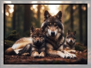 Zdjęcie Wilki, Wilczyca, Młode, Wilczki, Grafika AI