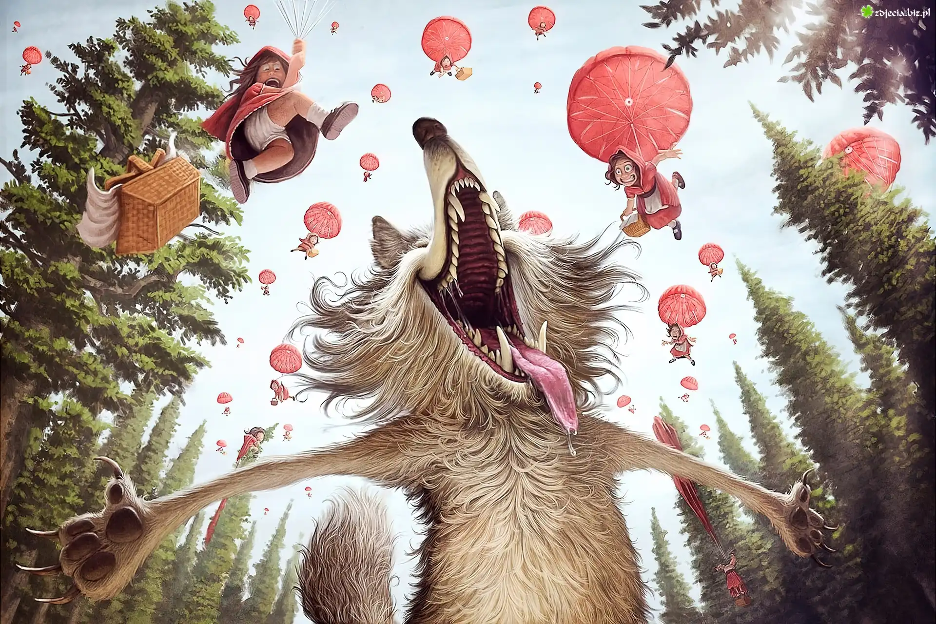 Zdjęcie Wilk, Czerwone, Kapturki, Spadochrony