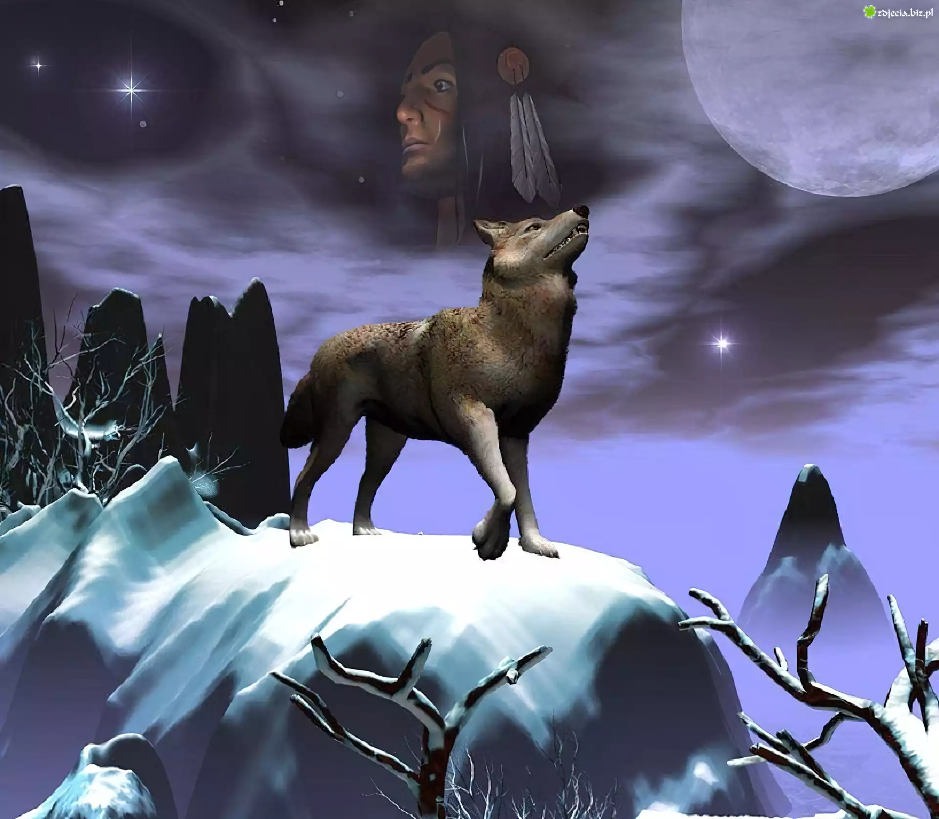 Zdjęcie Wilk, Góra, Twarz, Indianina