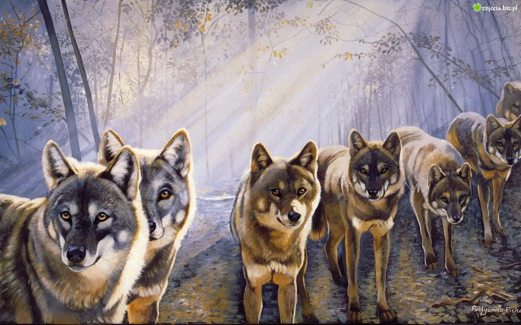 Zdjęcie Wilki, Las, Promienie, Słońca