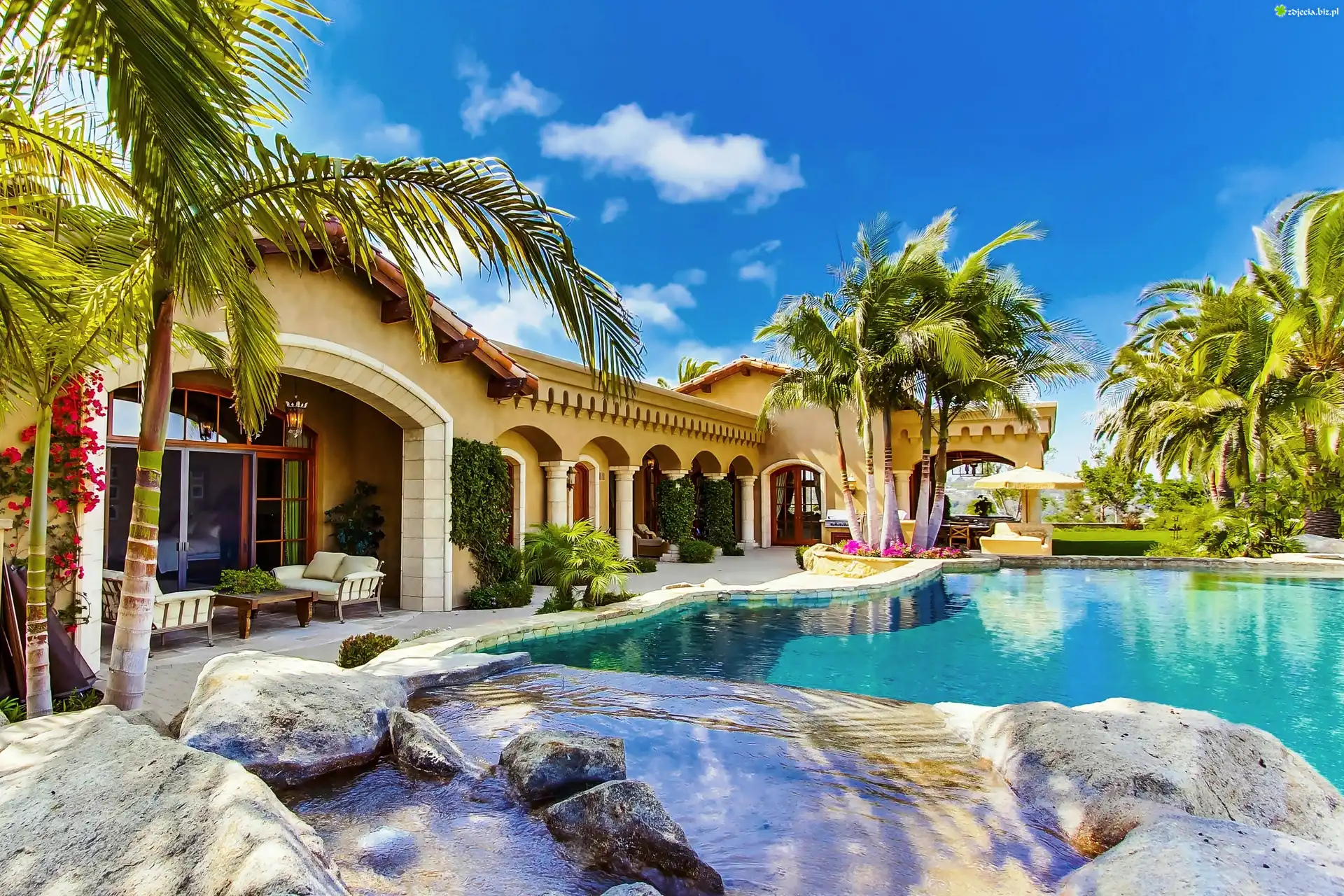 Palmy, Leżak, Parasole, Woda, Basen,  Wakacje Zdjęcie, Miasta, Domy Zima, Domy, Święta Zima, Las, Zachód, Słońca, Domek Cmentarz, Żydowski Latarnia morska Australia, Sydney, Fajerwerki, Most Sydney Harbour Bridge, Sydney Opera House Sypialnia, Duże, Łoże Krzewy, Palmy, Dom USA, Jacksonville, Florida Niemcy, Góry, Zamek Młyn, Zima Dom, Basen, Pokój, Leżaki Miasto, Wieczór, Chmury