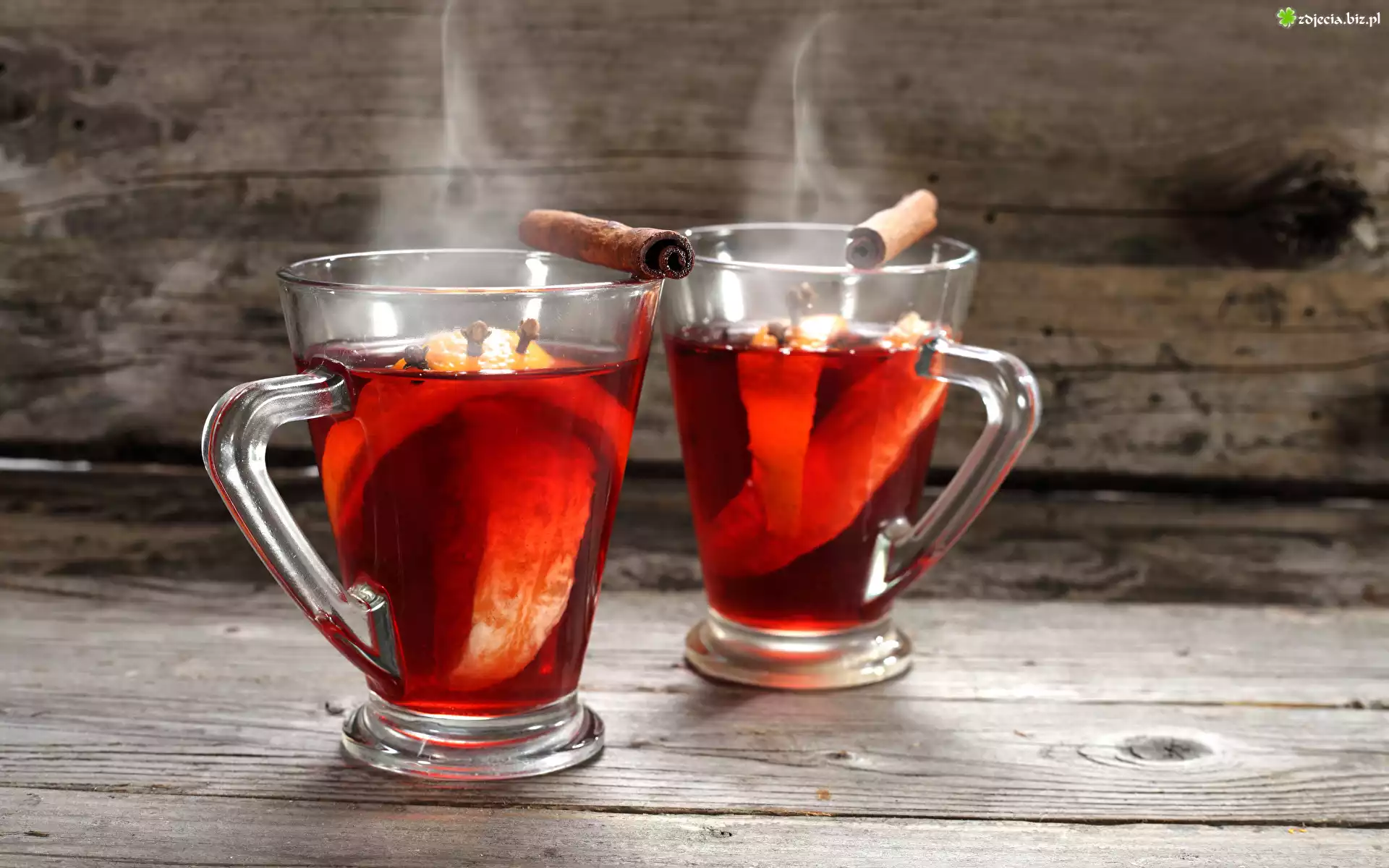 Zdjęcie Wino, Grzane, Cynamon, Dwie, Szklanki, Deski