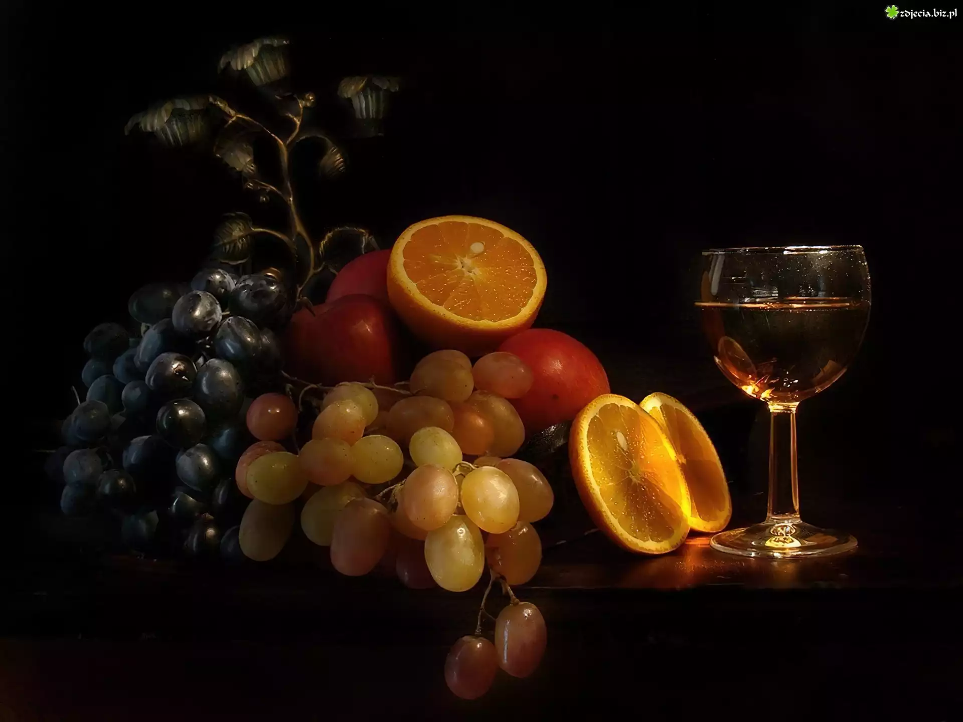 Zdjęcie, Winogrona, Pomarańcze, Lampka, Wina