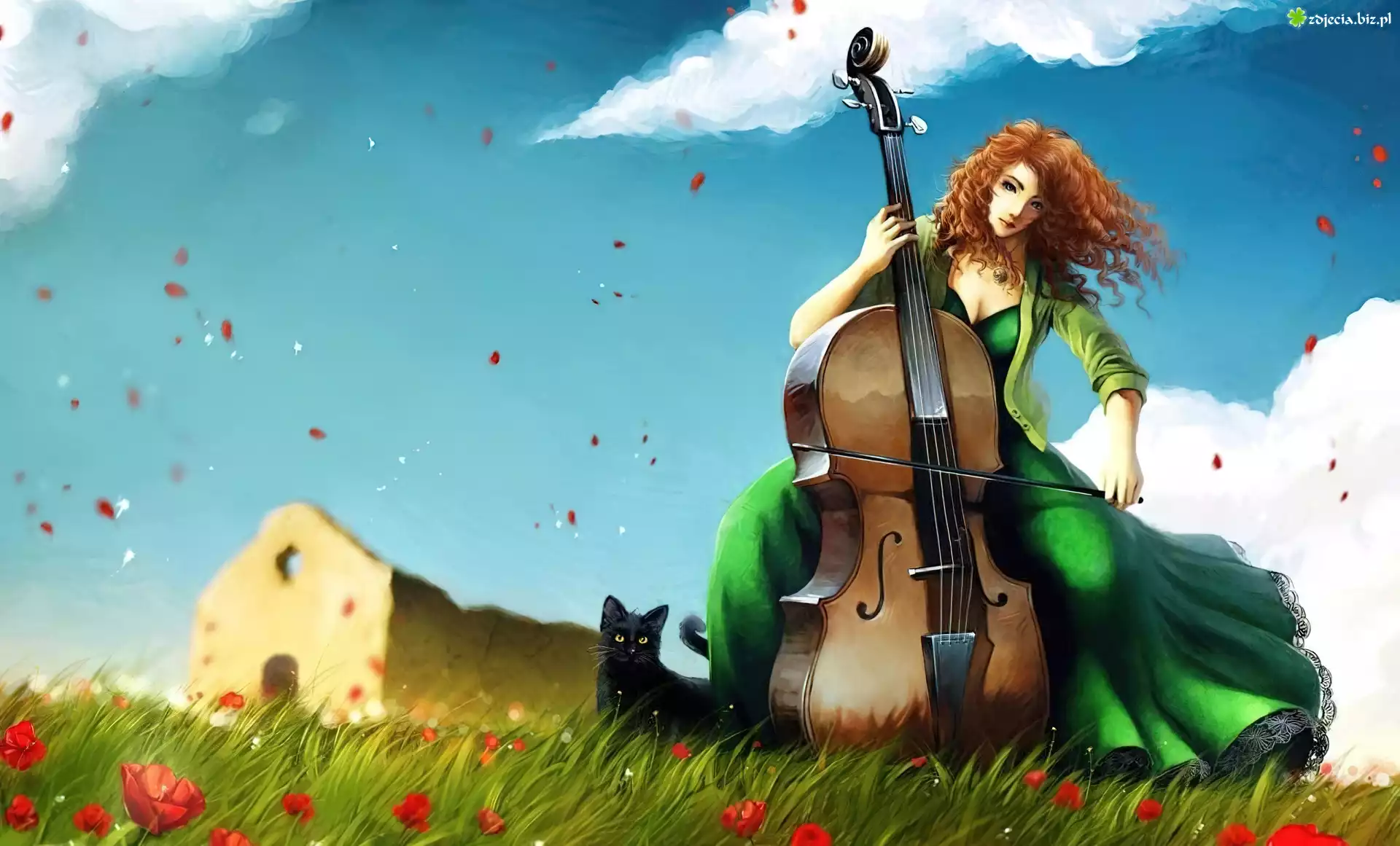 Zdjęcie Kobieta, Wiolonczela, Kot