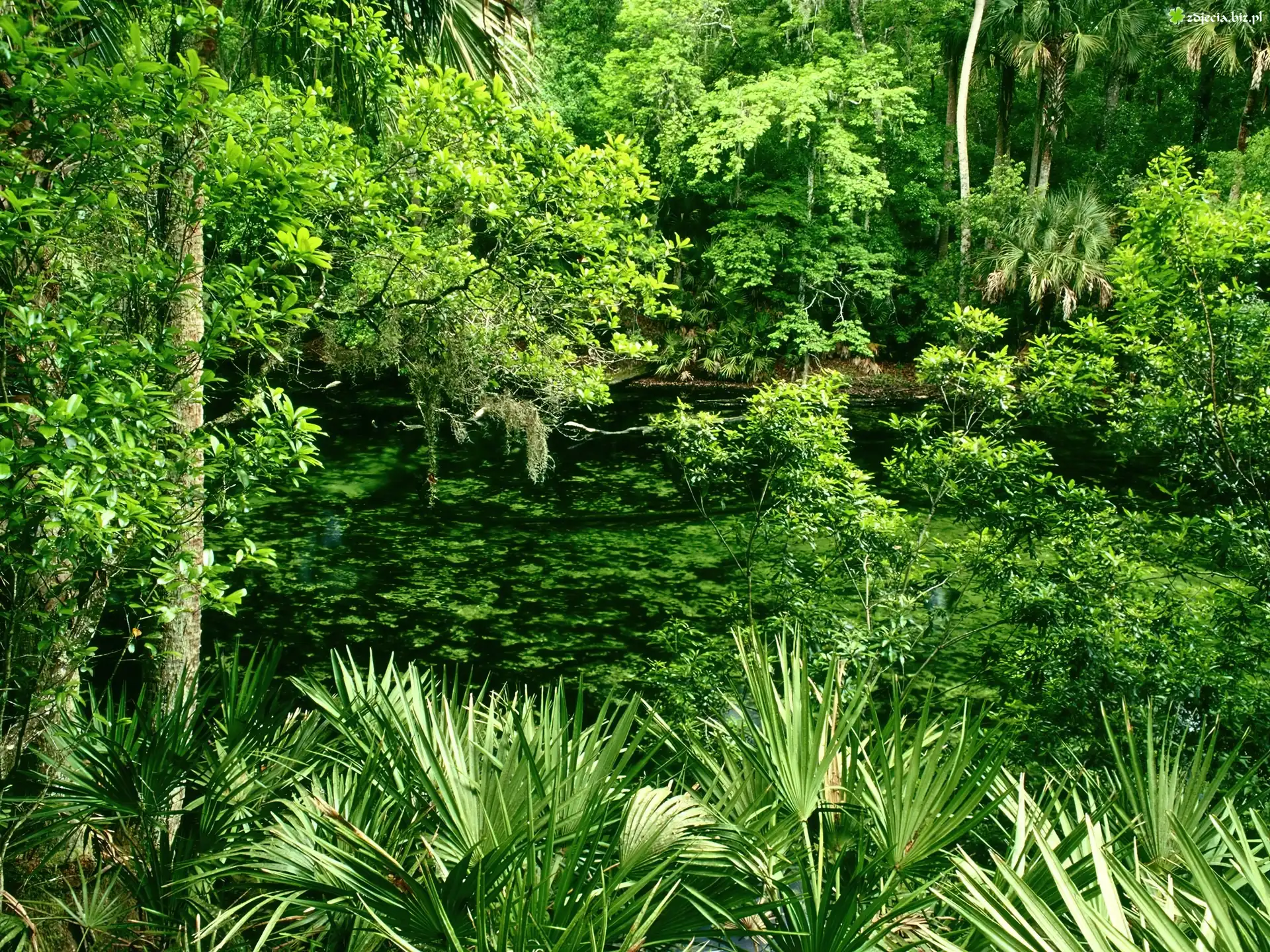 Zdjęcie Wiosenny, Las, Zielone, Drzewa, Krzewy