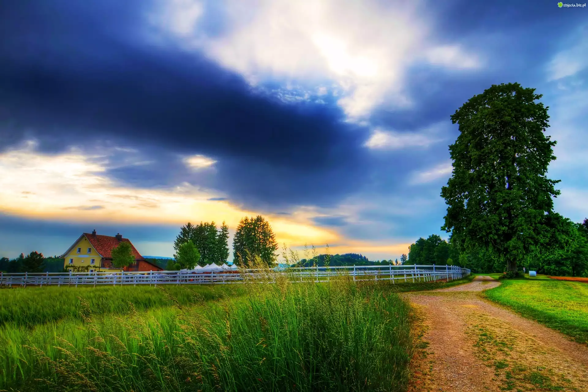 Zdjęcie Wioska, Wieś, Droga, Drzewa, Dom