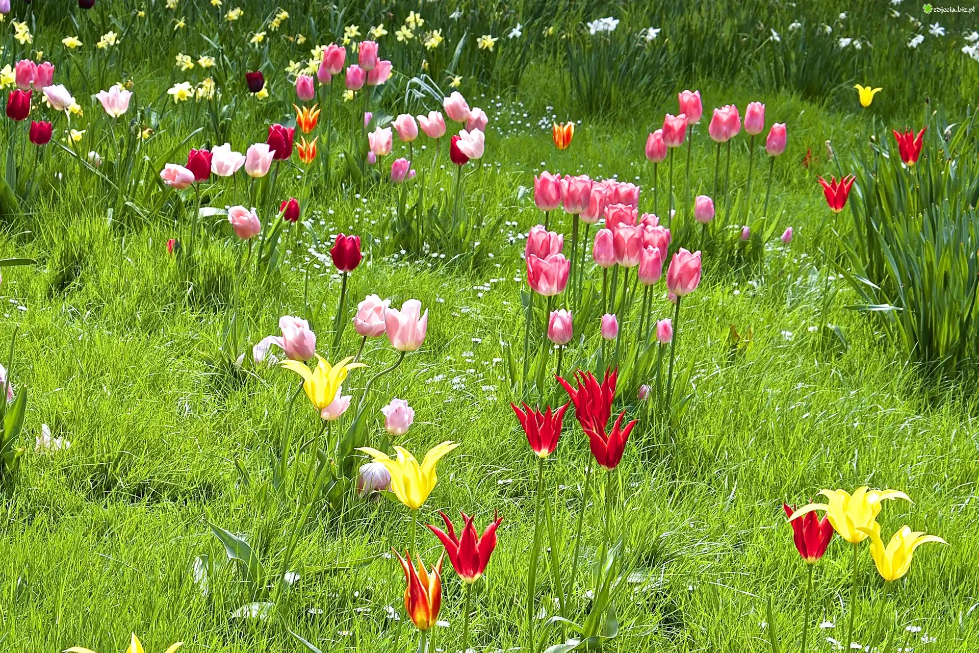 Zdjęcie Wiosna, Łąka, Kolorowe, Tulipany