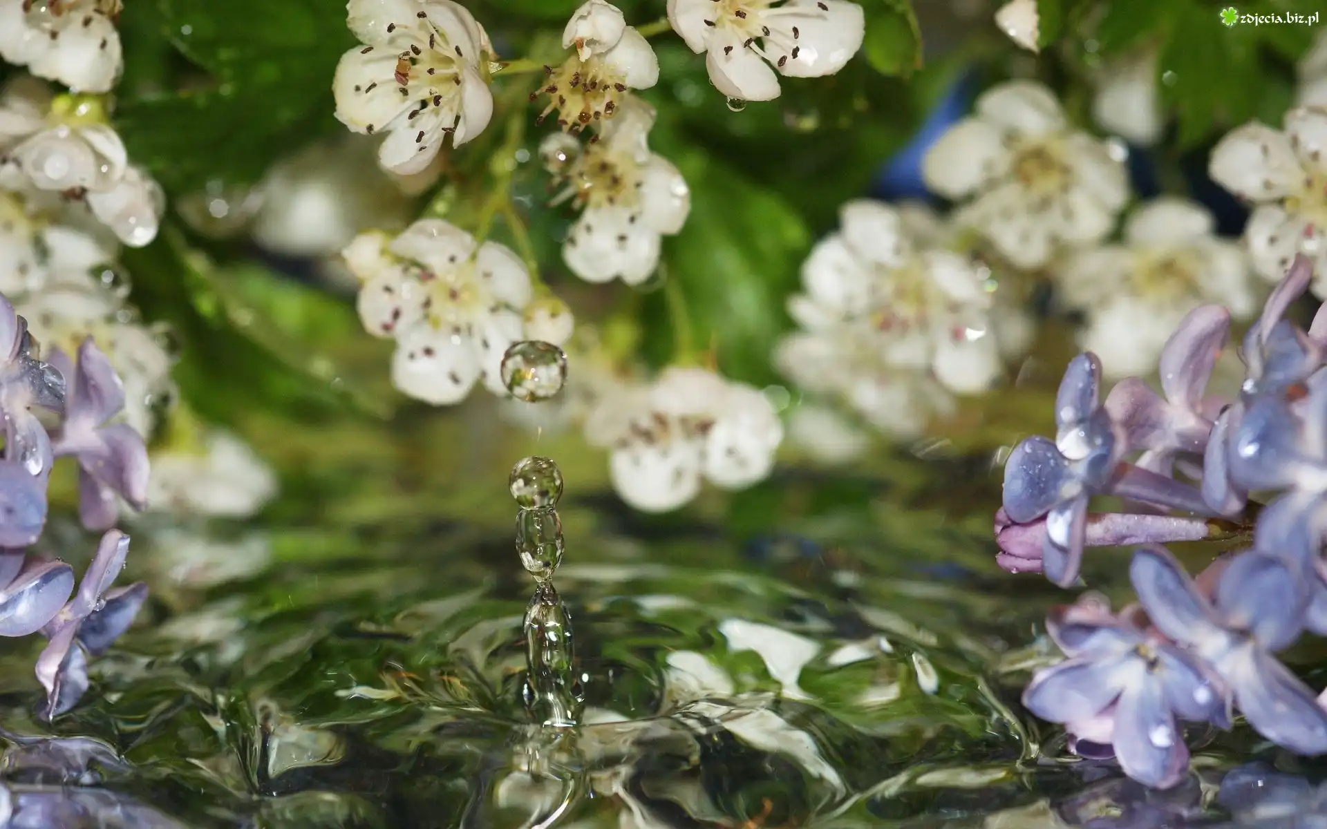 Zdjęcie Wiosna, Białe, Fioletowe, Kwiaty, Krople, Woda