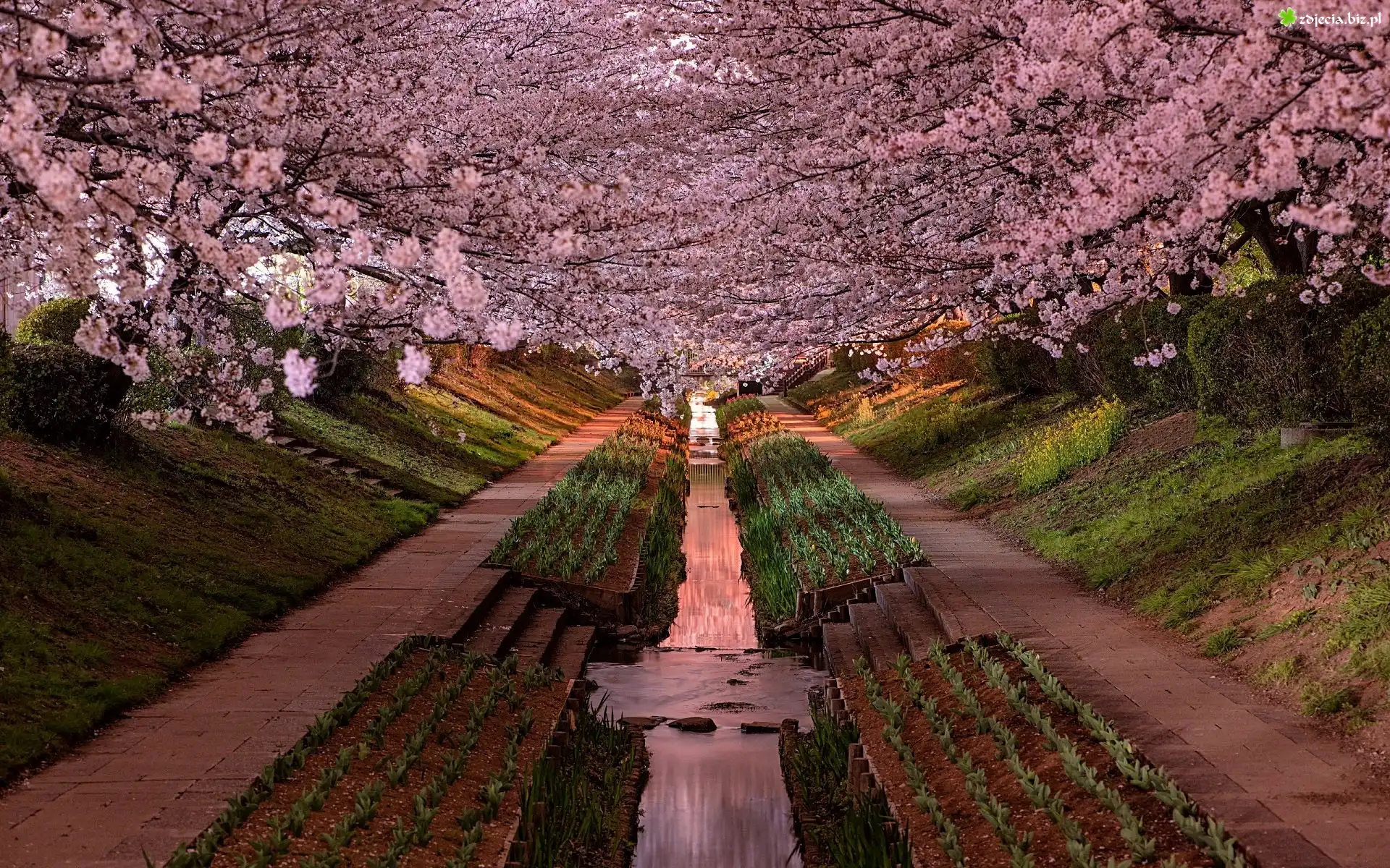 Zdjęcie Wiosna, Park, Kwitnące, Drzewa