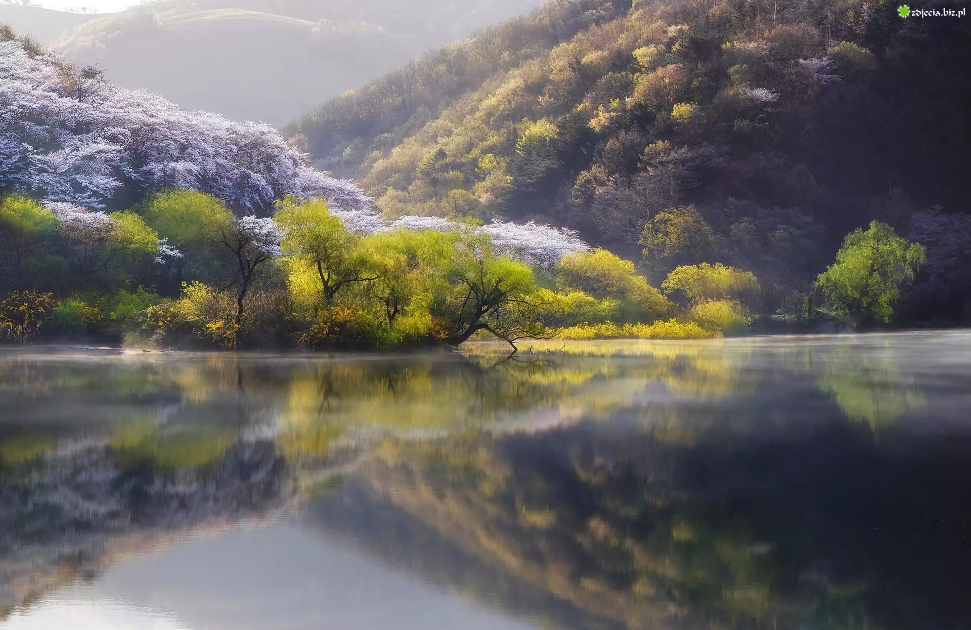 Zdjęcie, Wiosna, Jezioro, Las, Drzewa