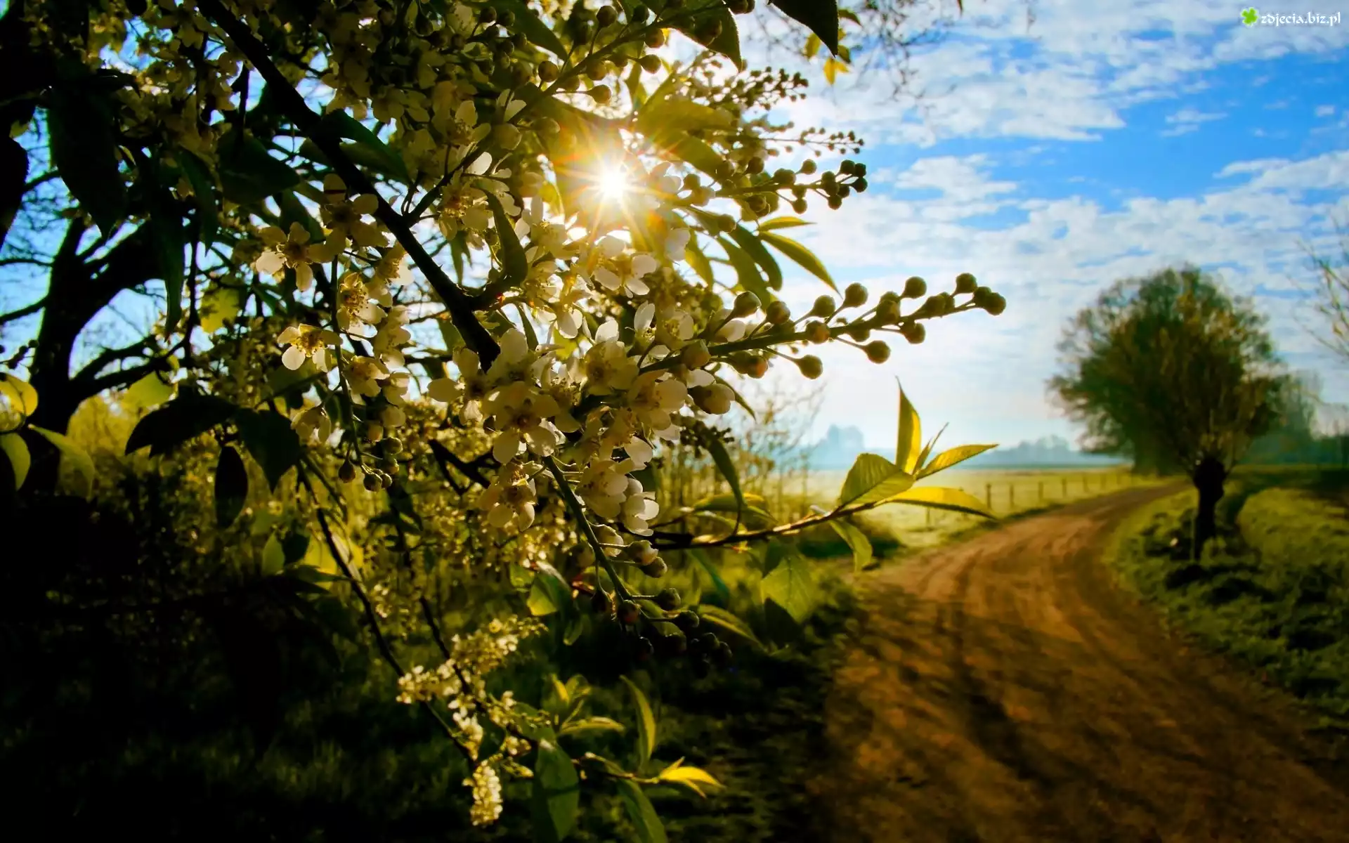 Zdjęcie Wiosna, Kwitnące Drzewo, Promienie Słońca, Droga