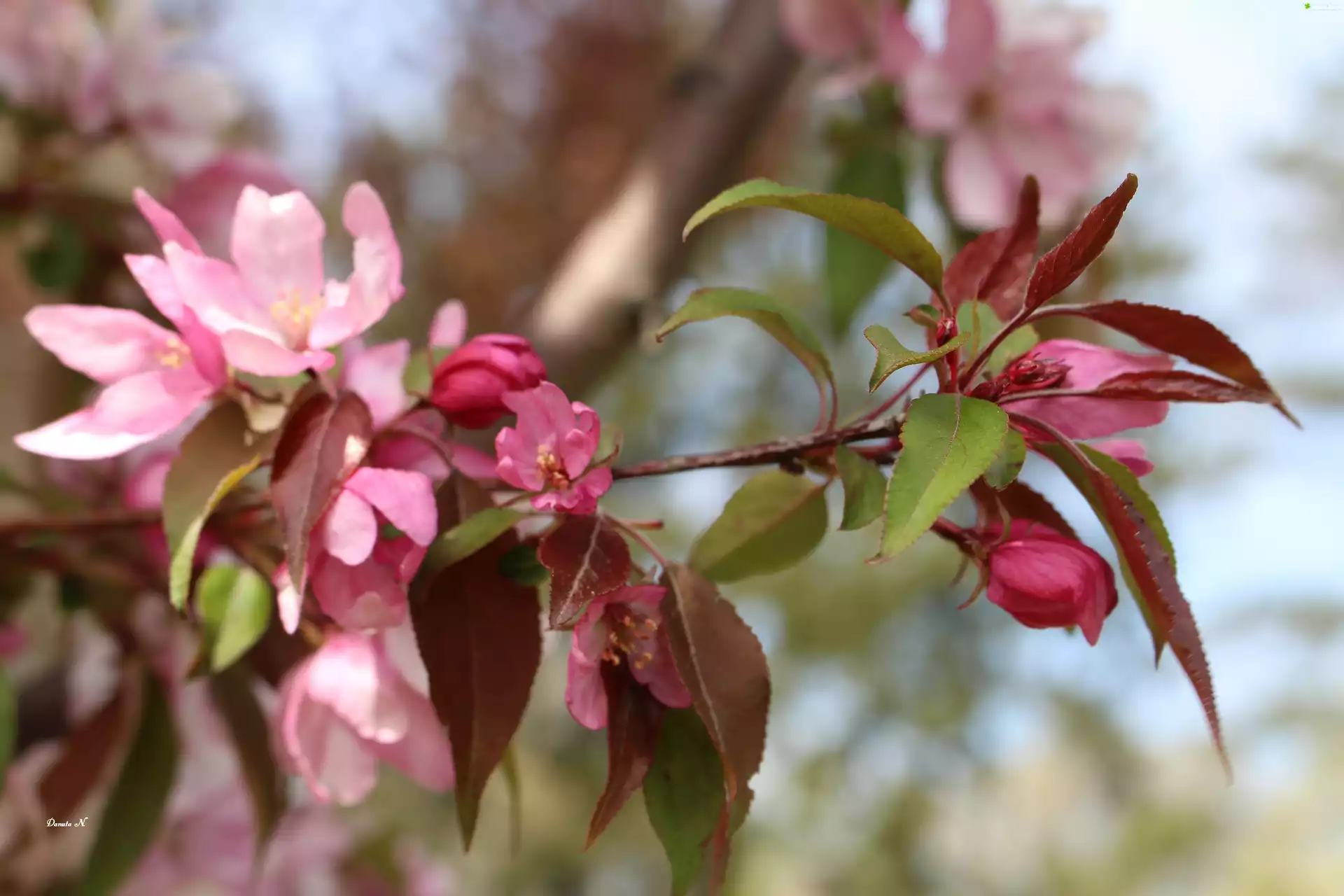 Zdjęcie Wiśnia, Japońska, Kwiaty, Gałązka, Wiosna