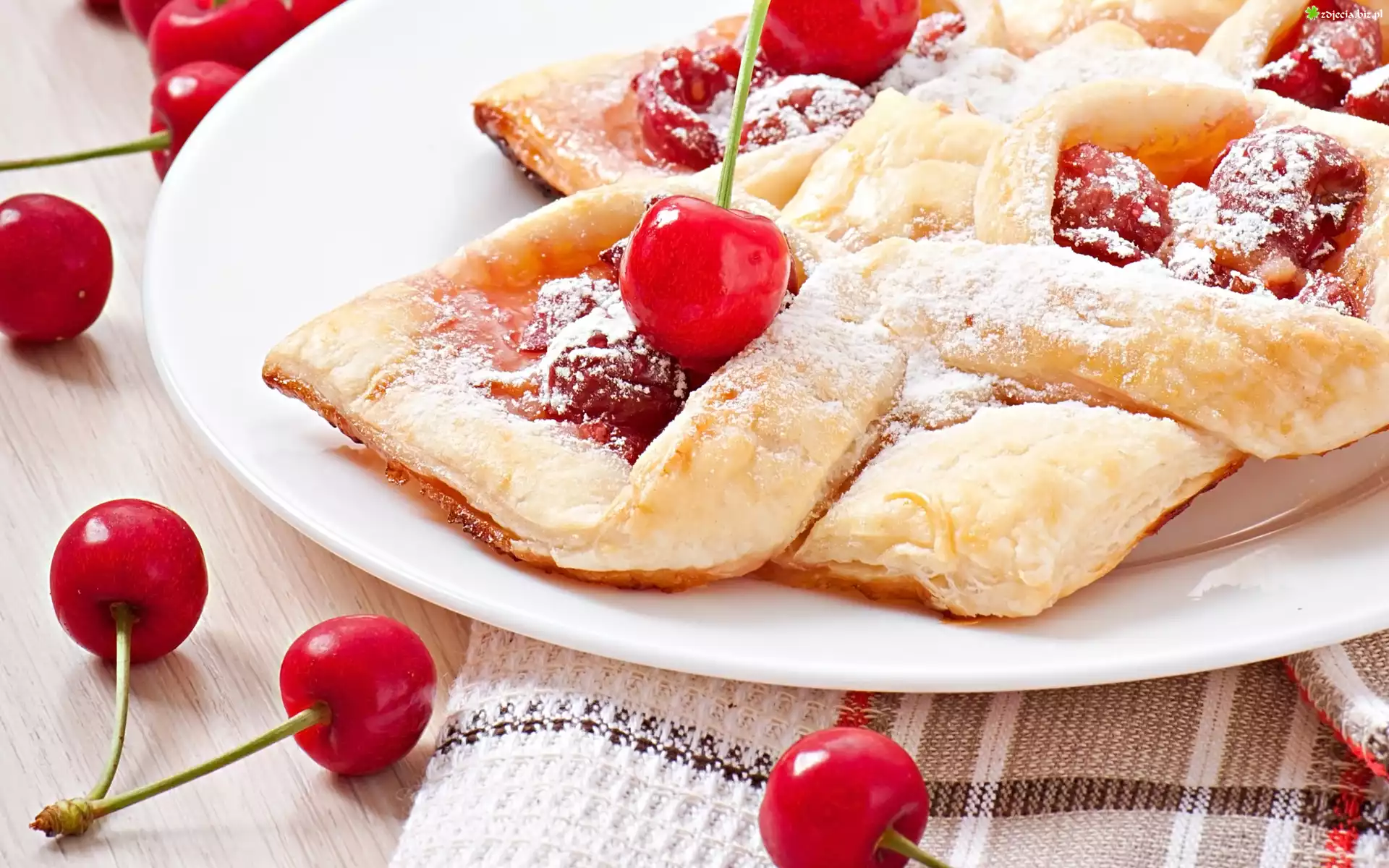 Zdjęcie Ciastka, Wiśnie, Talerz