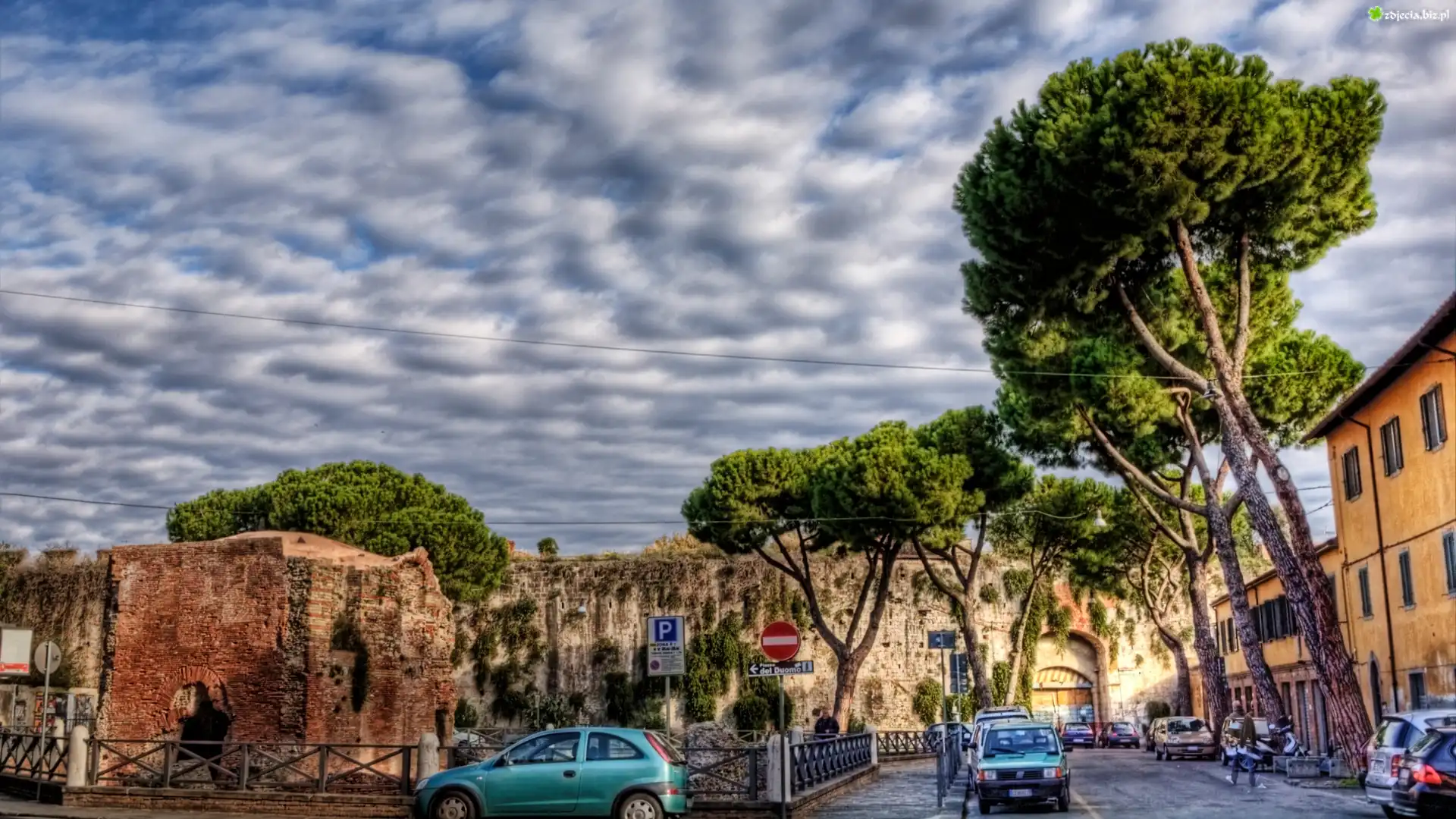 Zdjęcie Włochy, Piza, Domy, Drzewa, Samochody