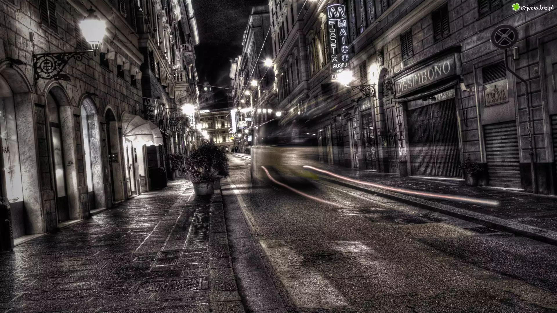 Zdjęcie Europa, Włochy, Genua, Ulica, Wieczór, Domy, Światła