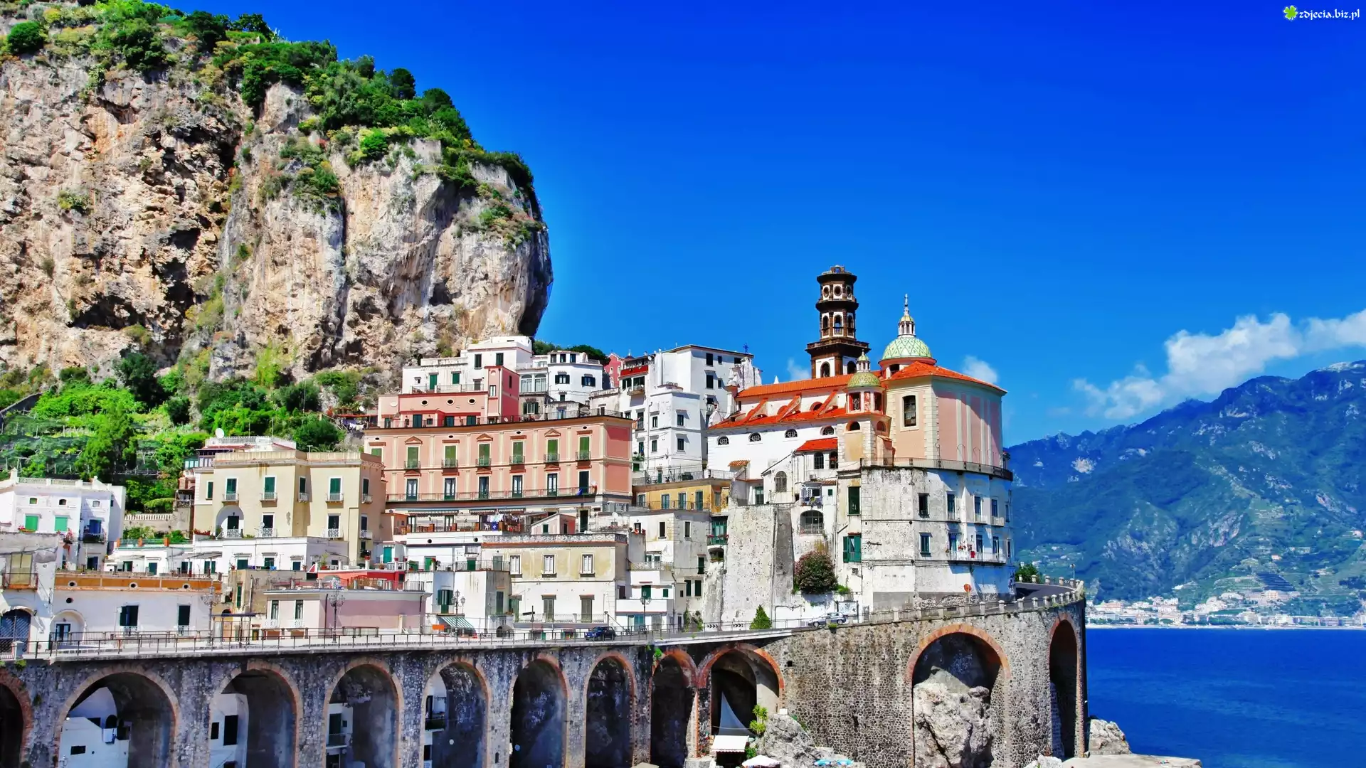 Zdjęcie Włochy, Positano, Miasteczko, Góry, Jezioro
