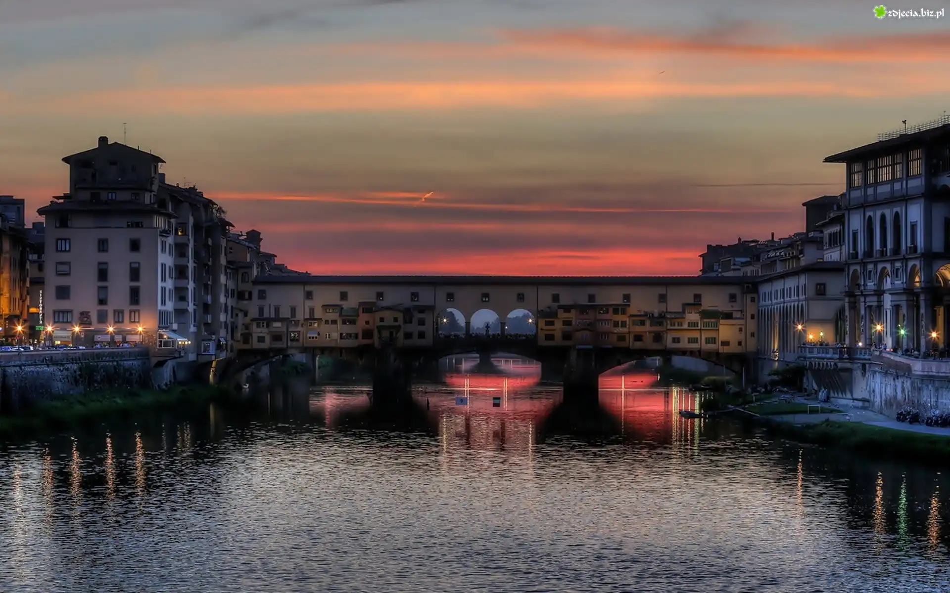 Zdjęcie, Włochy, Florencja, Most, Ponte Vecchio, Noc