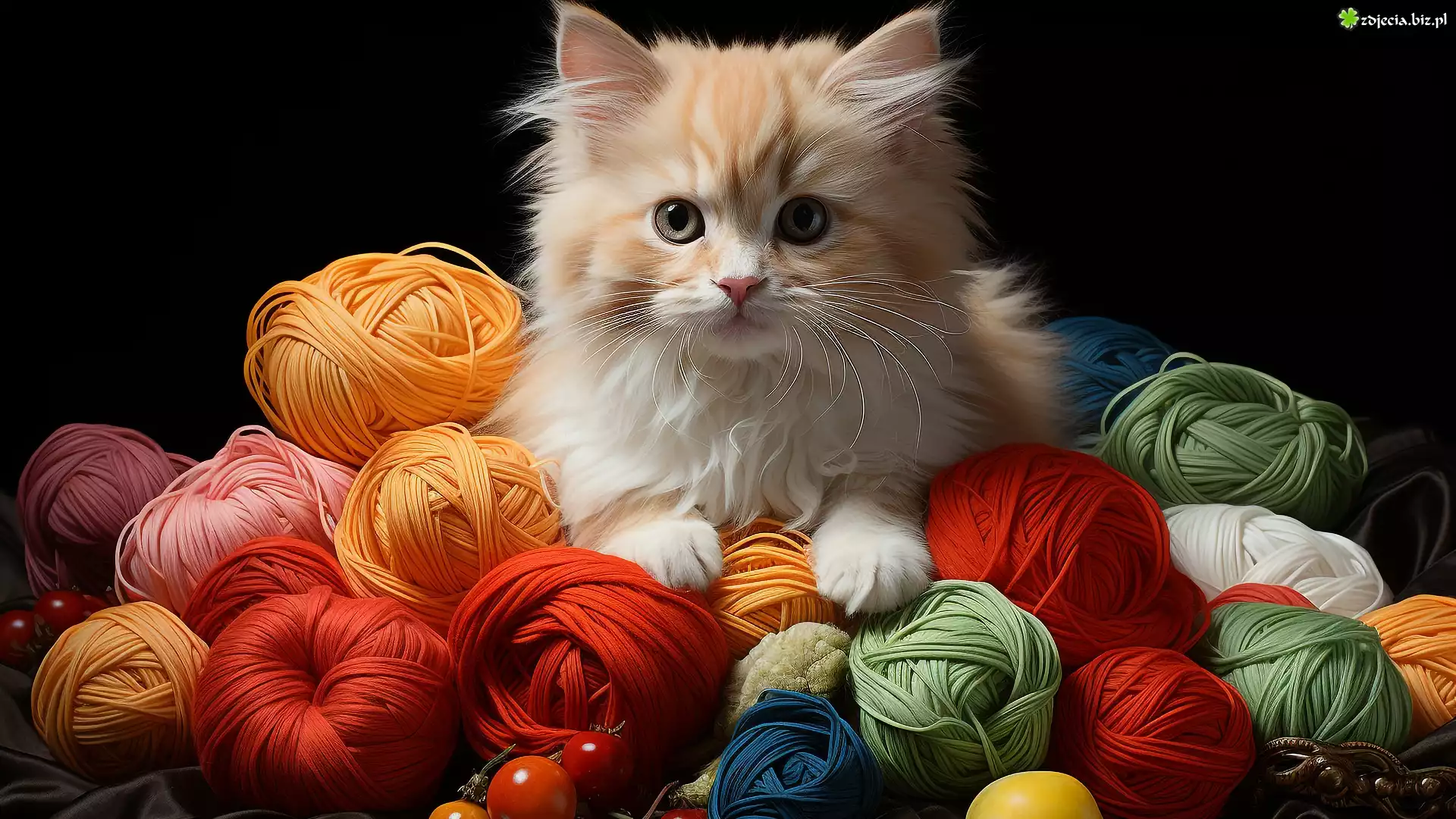 Zdjęcie Kot, Włóczki, Kolorowe, Ciemne, Tło