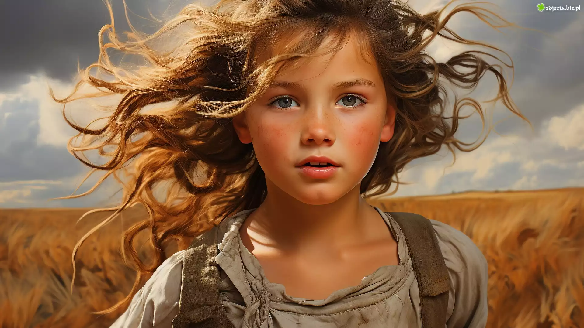 Zdjęcie Dziewczynka, Rozwiane, Długie, Włosy, Piegi, 2D