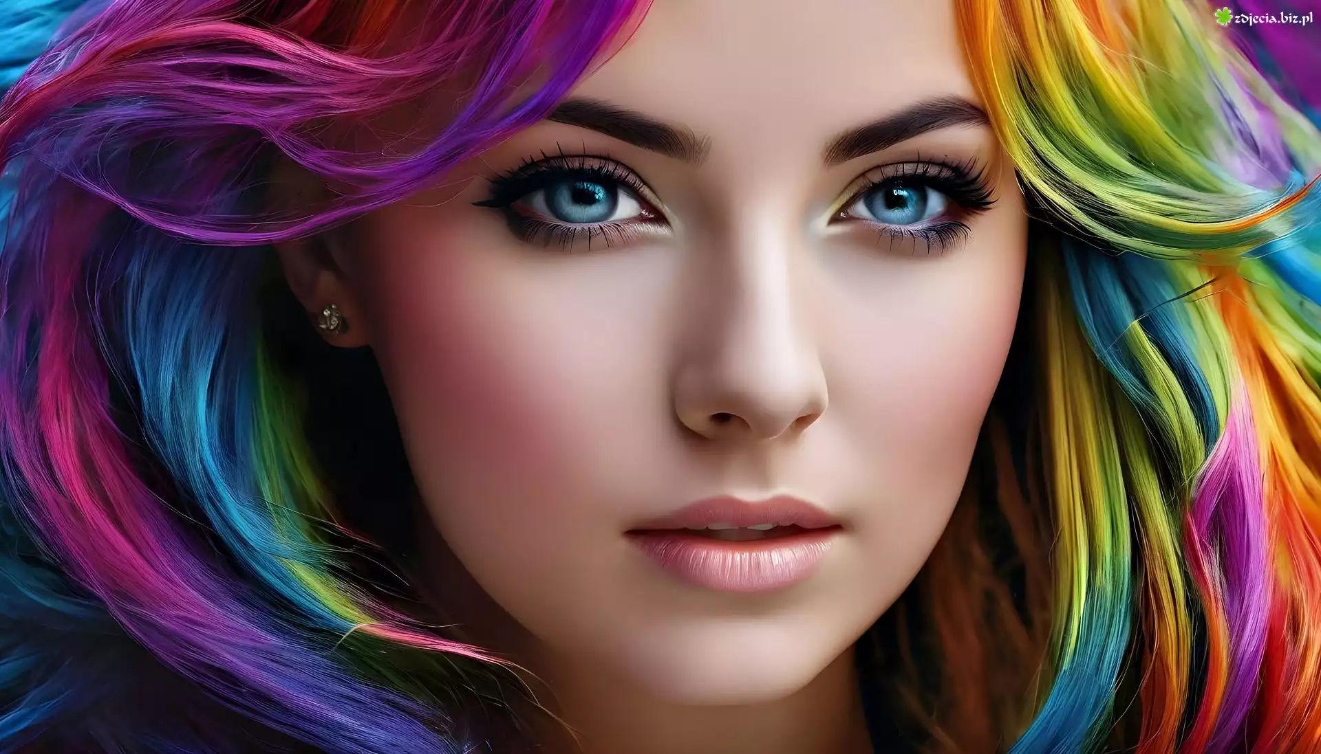 Zdjęcie Kobieta, Portret, Kolorowe, Włosy, Tęczowe, Grafika