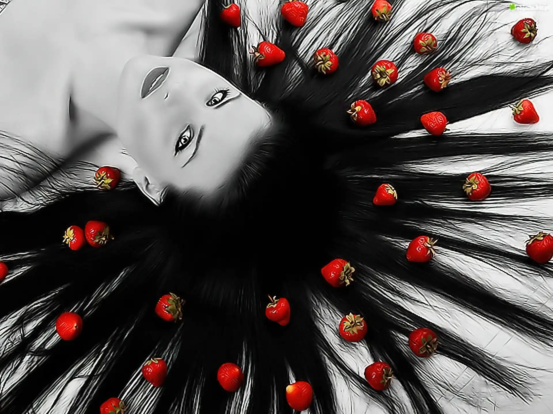 Zdjęcie, Kobieta, Włosy, Truskawki