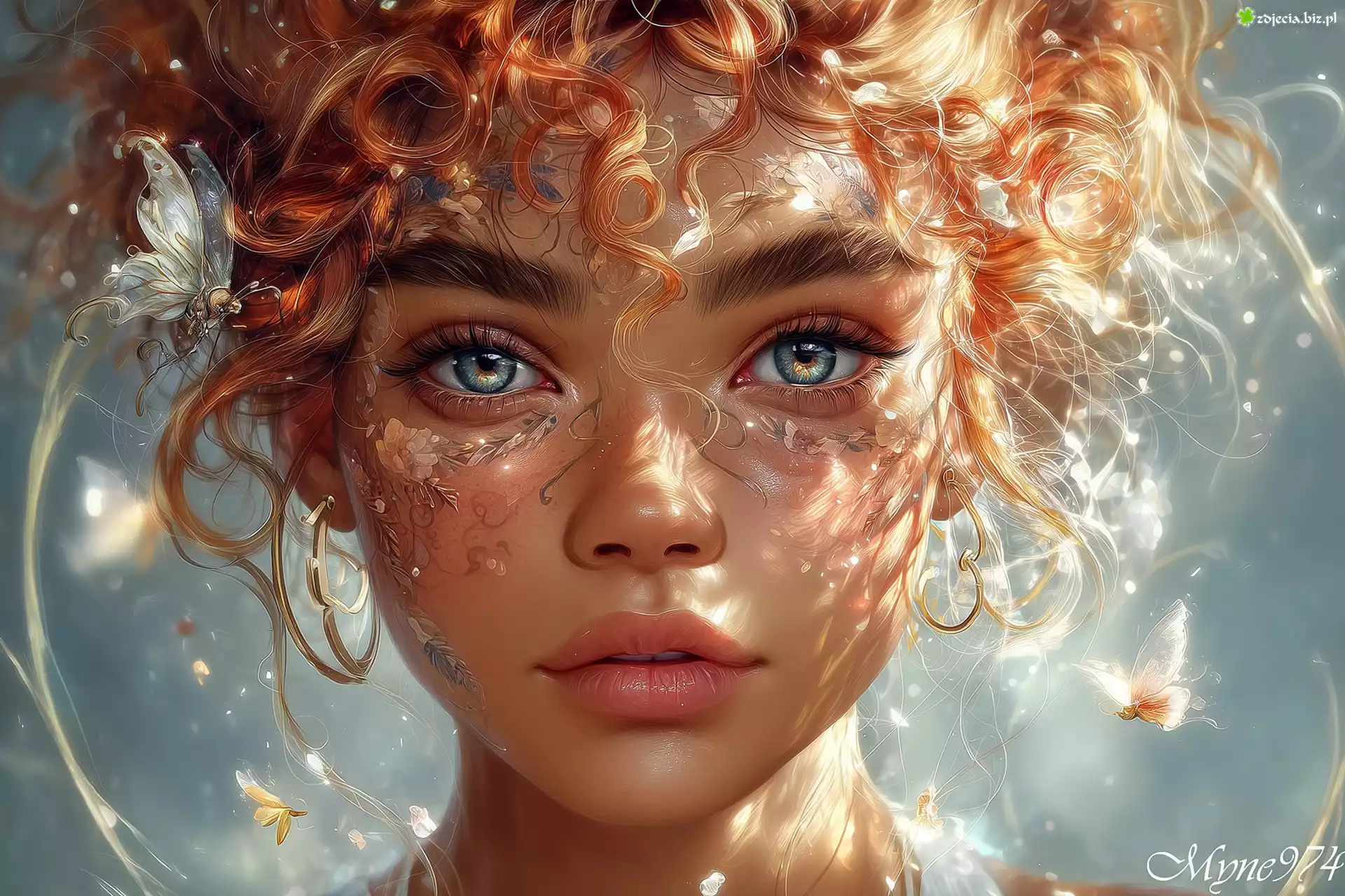 Zdjęcie Dziewczyna, Rude, Kręcone, Włosy, Spojrzenie, Grafika AI