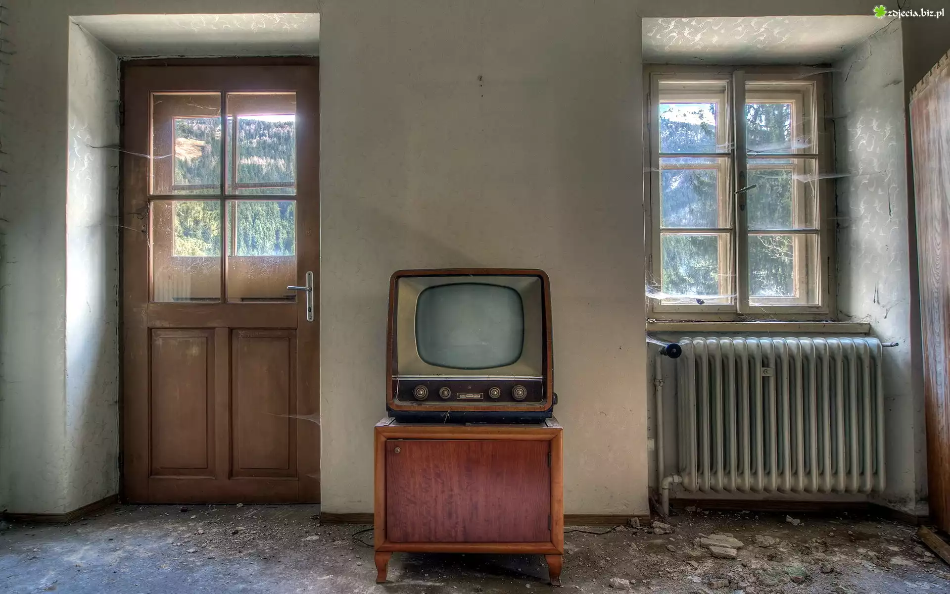 Zdjęcie Zaniedbane, Wnętrze, Telewizor, Drzwi, Okno