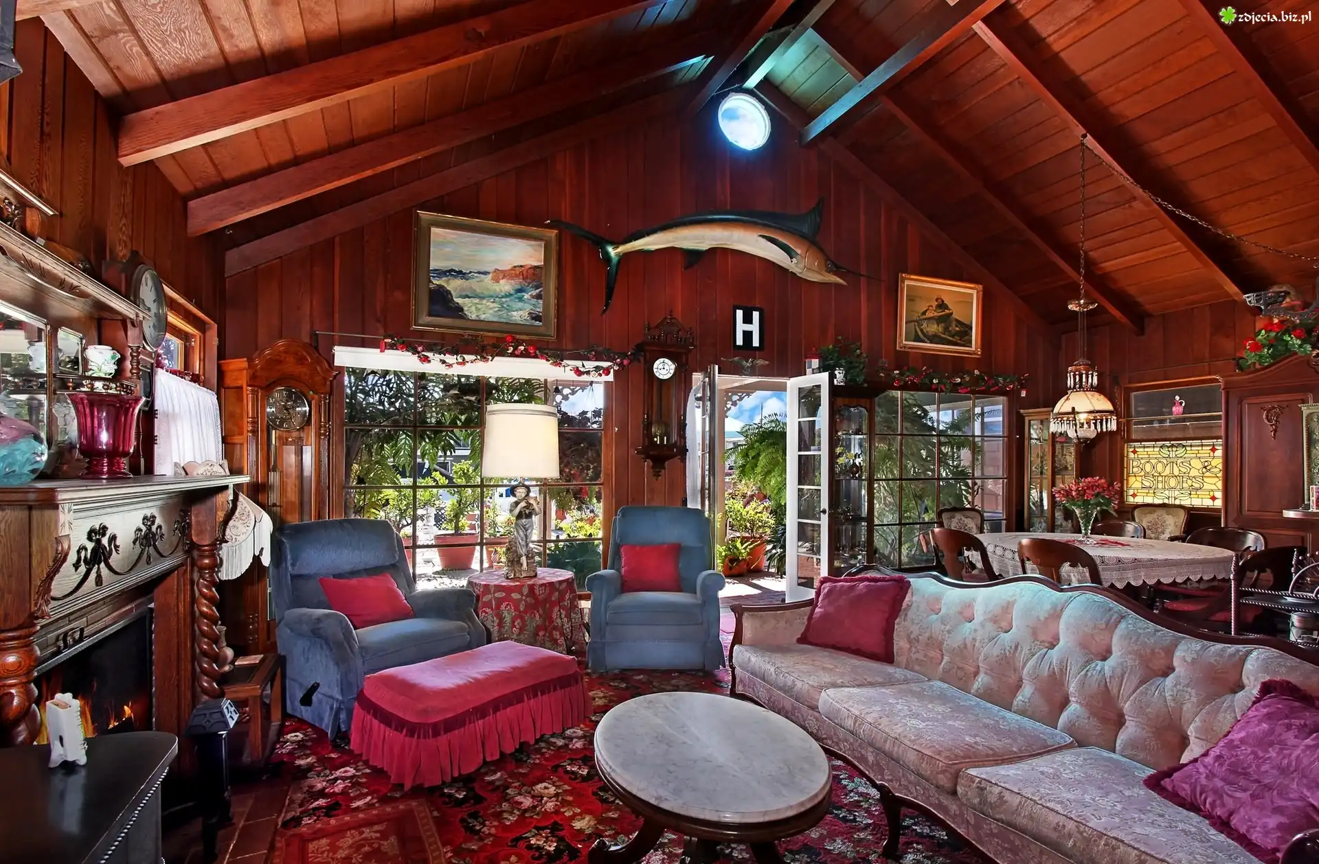 Zdjęcie, Salon, Meble, Okno, Ogród