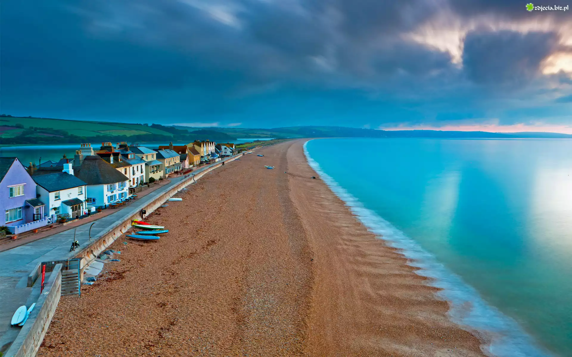 Zdjęcie Woda, Piasek, Łódki, Chmury, Domy