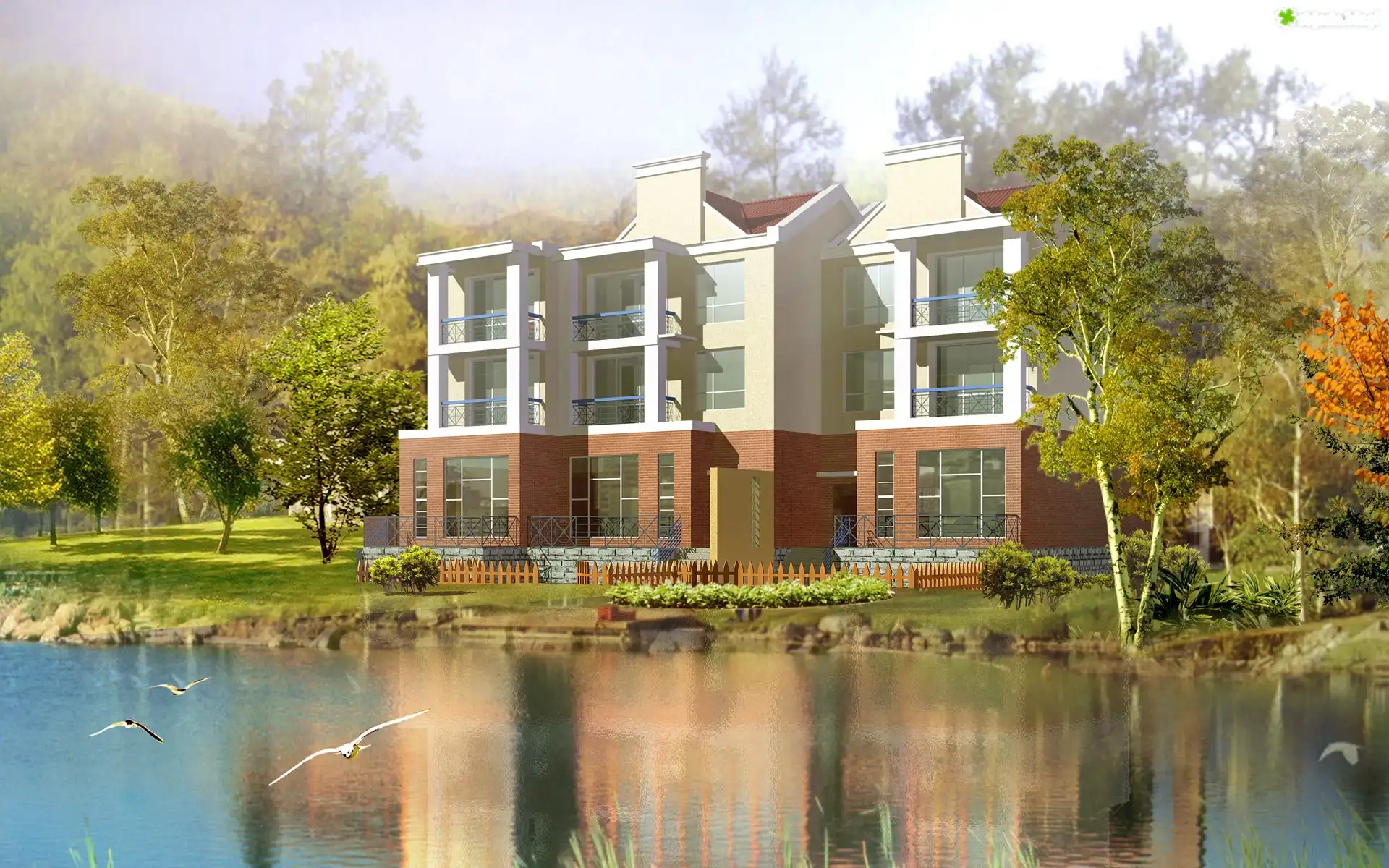 Zdjęcie Dom, Woda, Drzewa