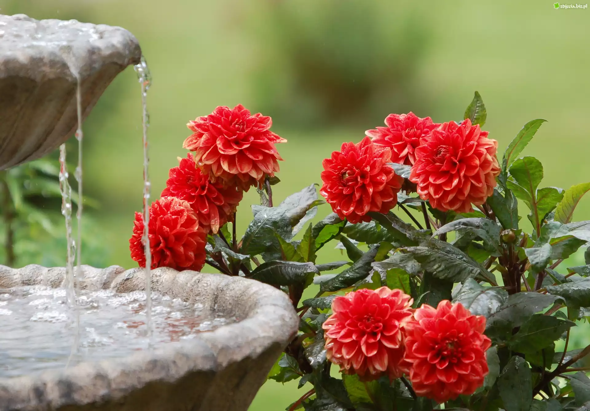 Zdjęcie, Fontanna, Woda, Kwiaty