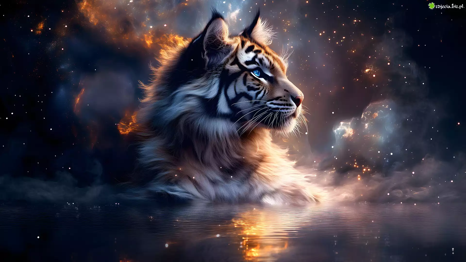 Zdjęcie Grafika, Fantasy, Tygrys, Woda