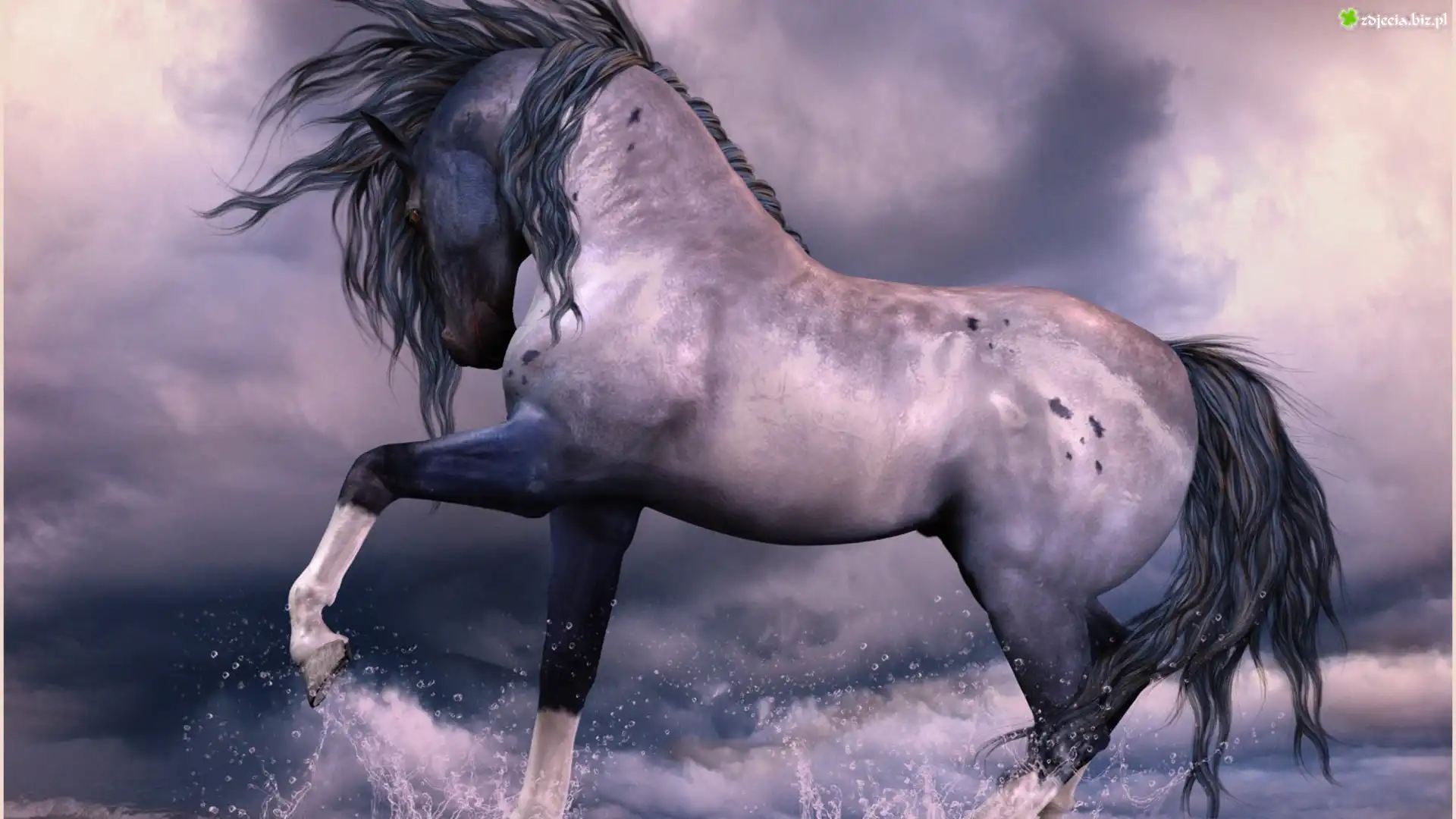 Zdjęcie Koń, Woda, Chmury