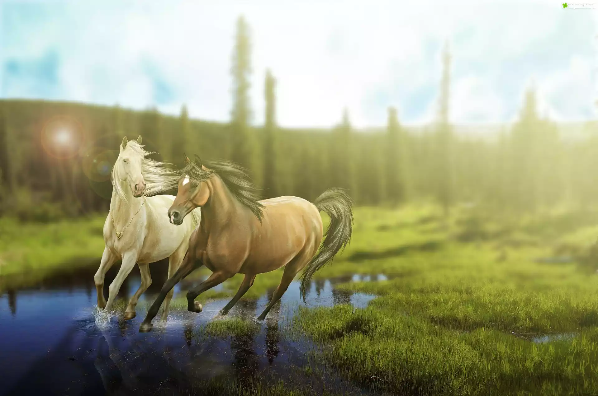 Zdjęcie Konie, Woda, Art