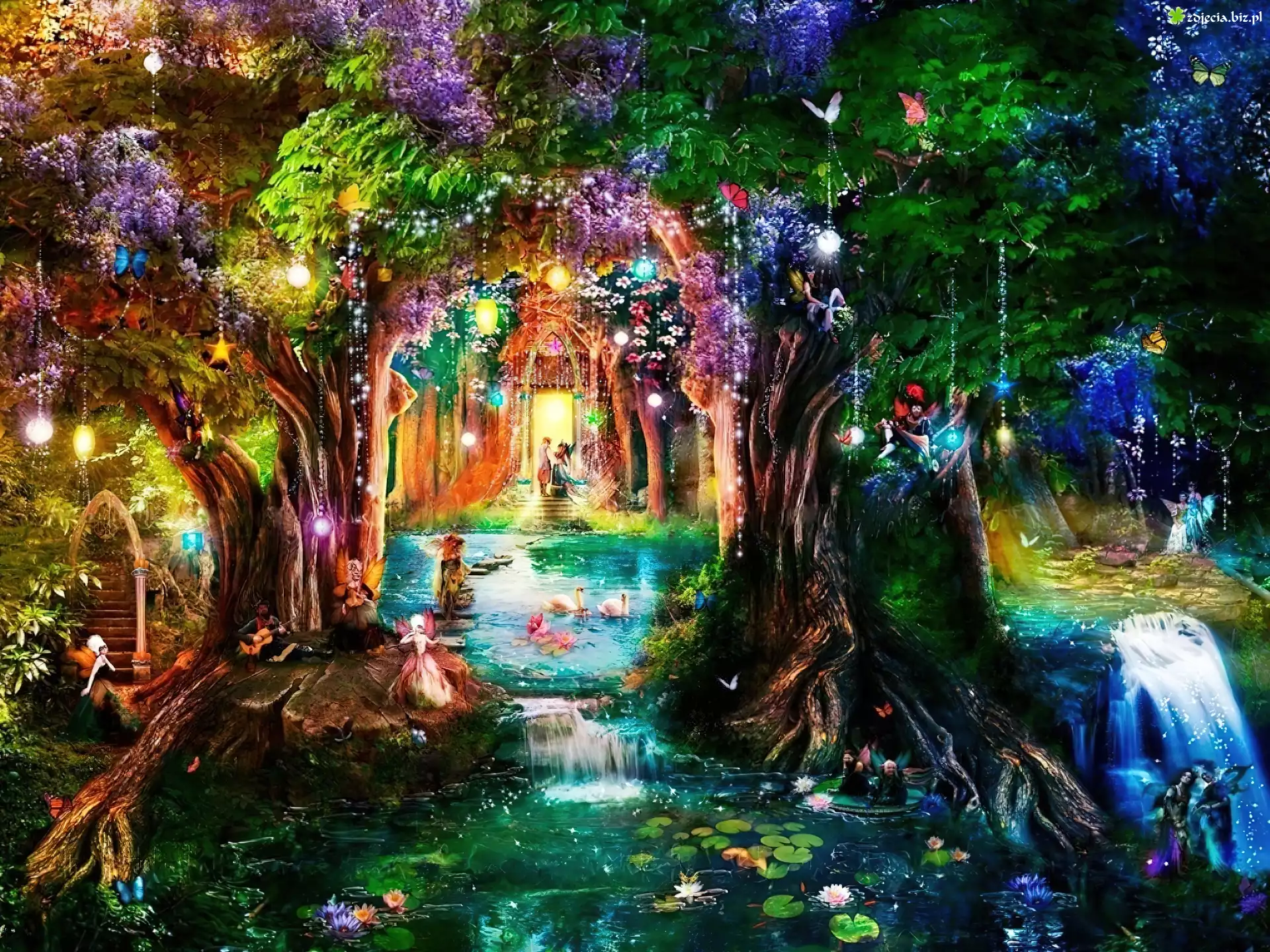 Zdjęcie Las, Woda, Lampiony